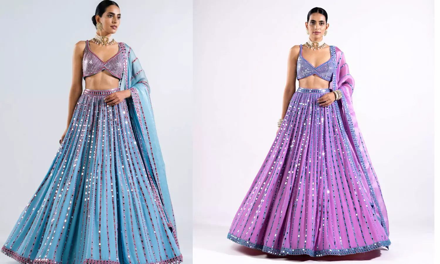 சிவப்புடன் தங்கநிறம் கலந்துள்ள வண்ணத்தை திருமண விழாவுக்கு அணிந்தால் ஆடம்பரமான தோற்றத்தை தரும். ஆரஞ்சு, சிவப்பு போன்ற வண்ணங்கள் மேலும் இளமையாகக் காட்டும். மஞ்சள் மற்றும் பச்சை இரண்டும் இணைந்த நிறம் கொண்ட லெகங்கா அணிந்தால் உங்கள் தோற்றம் மிடுக்காக மாறும்.