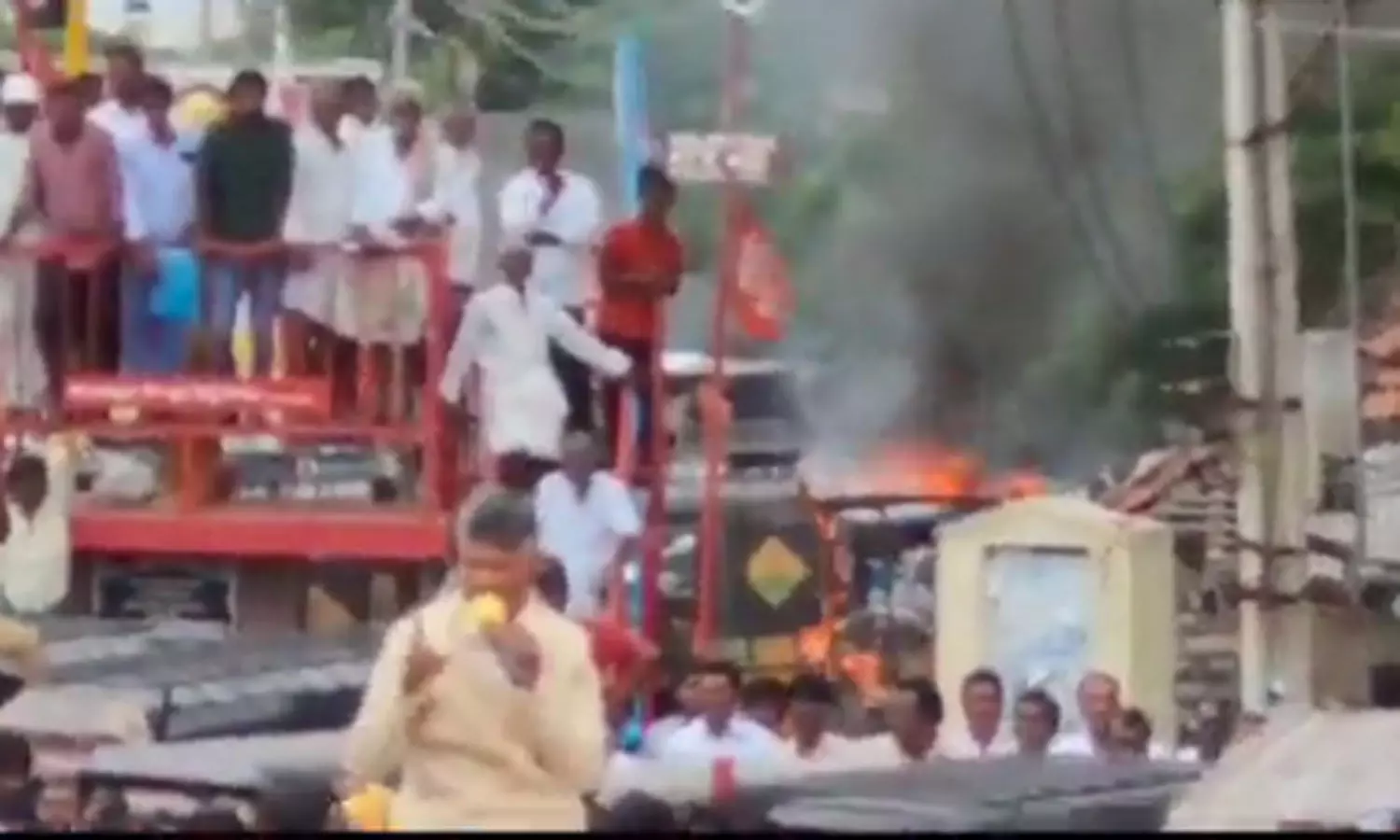 இந்நிலையில் அங்கு வந்த சந்திரபாபு நாயுடு ஆந்திர மாநில நீர்வளத்துறை அமைச்சர் பெத்தி ரெட்டி ராமச்சந்திரா ரெட்டிக்கு சவால் விடுக்கும் வகையில் தன்னுடைய பிரச்சார வாகனத்தில் இருந்தவாறு பேசினார்.