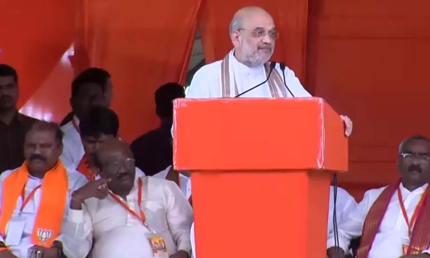 அப்போது, பொதுக்கூட்டத்தில் பேசிய அமித் ஷா, கே. சந்திரசேகர ராவ் அரசாங்கத்தை கடுமையாக விமர்சித்தார். மேலும் தெலுங்கானா மாநிலத்தில் கே. சந்திரசேகர ராவ் அரசாங்கத்தை வெளியேற்றி, பா.ஜ.க. அங்கு ஆட்சியமைக்க வேண்டும் என்று வலியுறுத்தினார்.