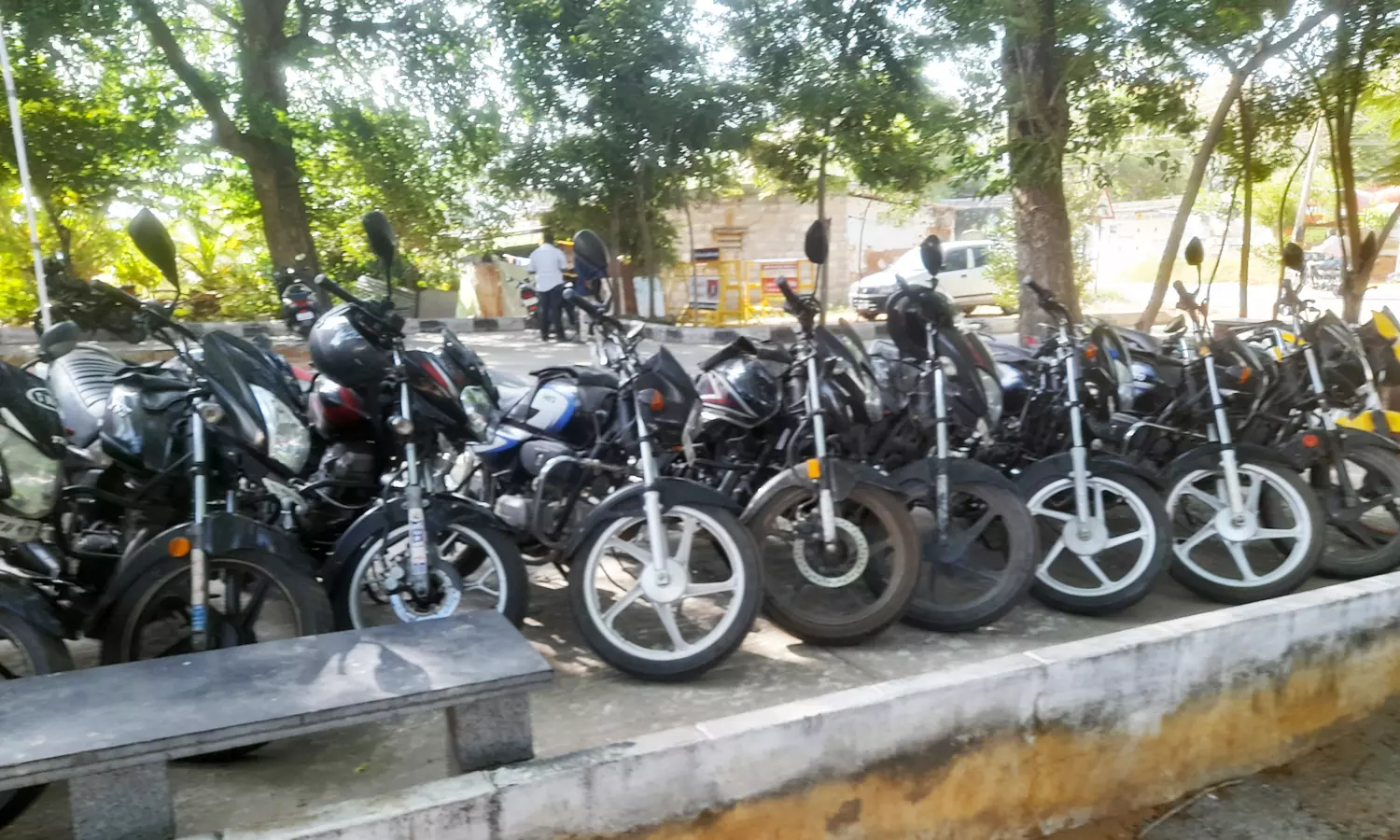 பறிமுதல் செய்யப்பட்ட மோட்டார் சைக்கிள்கள்.