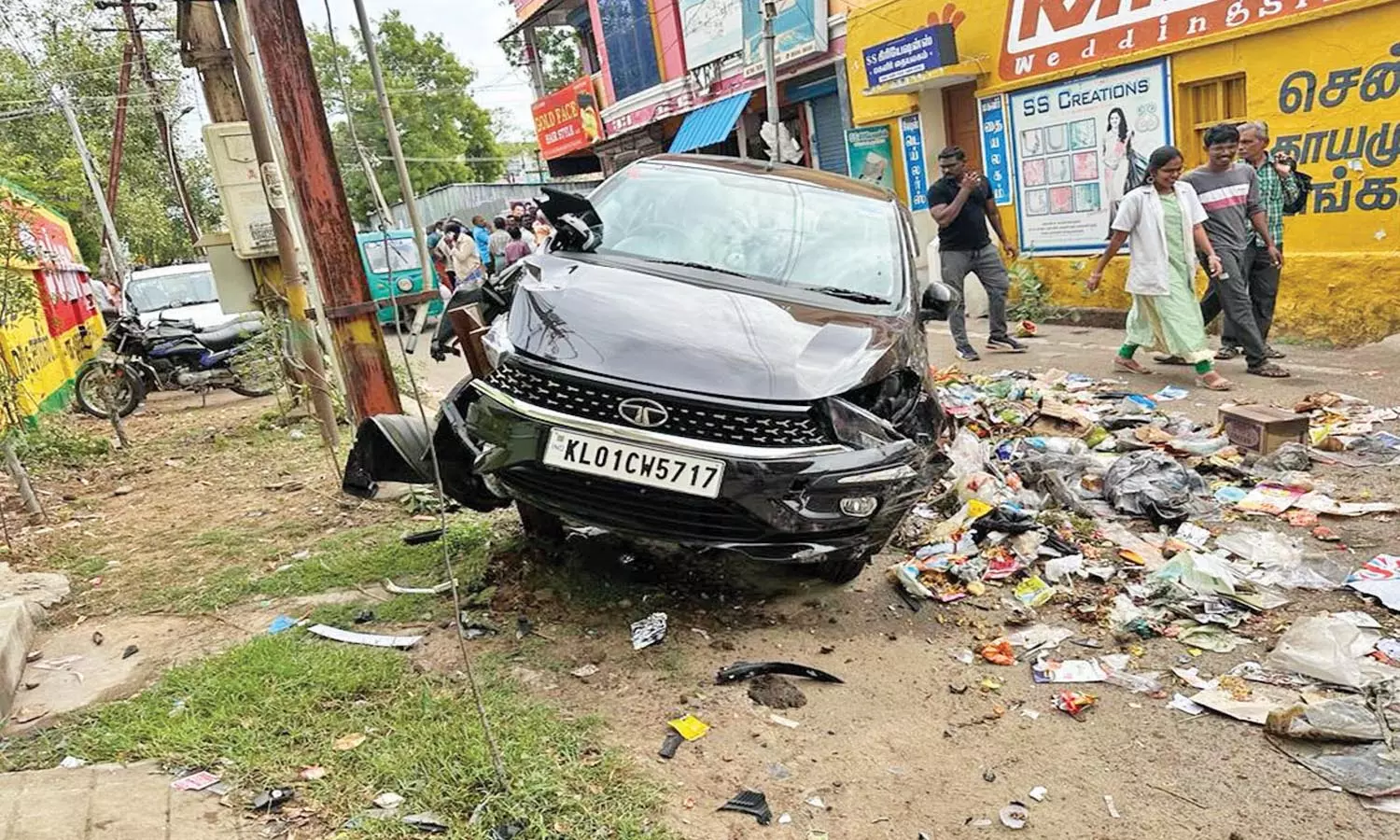 இதனால் காரை ஆகாஷ் சந்திரன் திருப்பியுள்ளார். அப்போது அருகில் நின்று கொண்டிருந்த மாநகராட்சி தூய்மை பணியாளர்களின் வாகனம் மீது மோதி அதன் அருகில் நின்று கொண்டி ருந்த கொண்டிருந்தவர்கள் மீதும் கார் மோதியது.