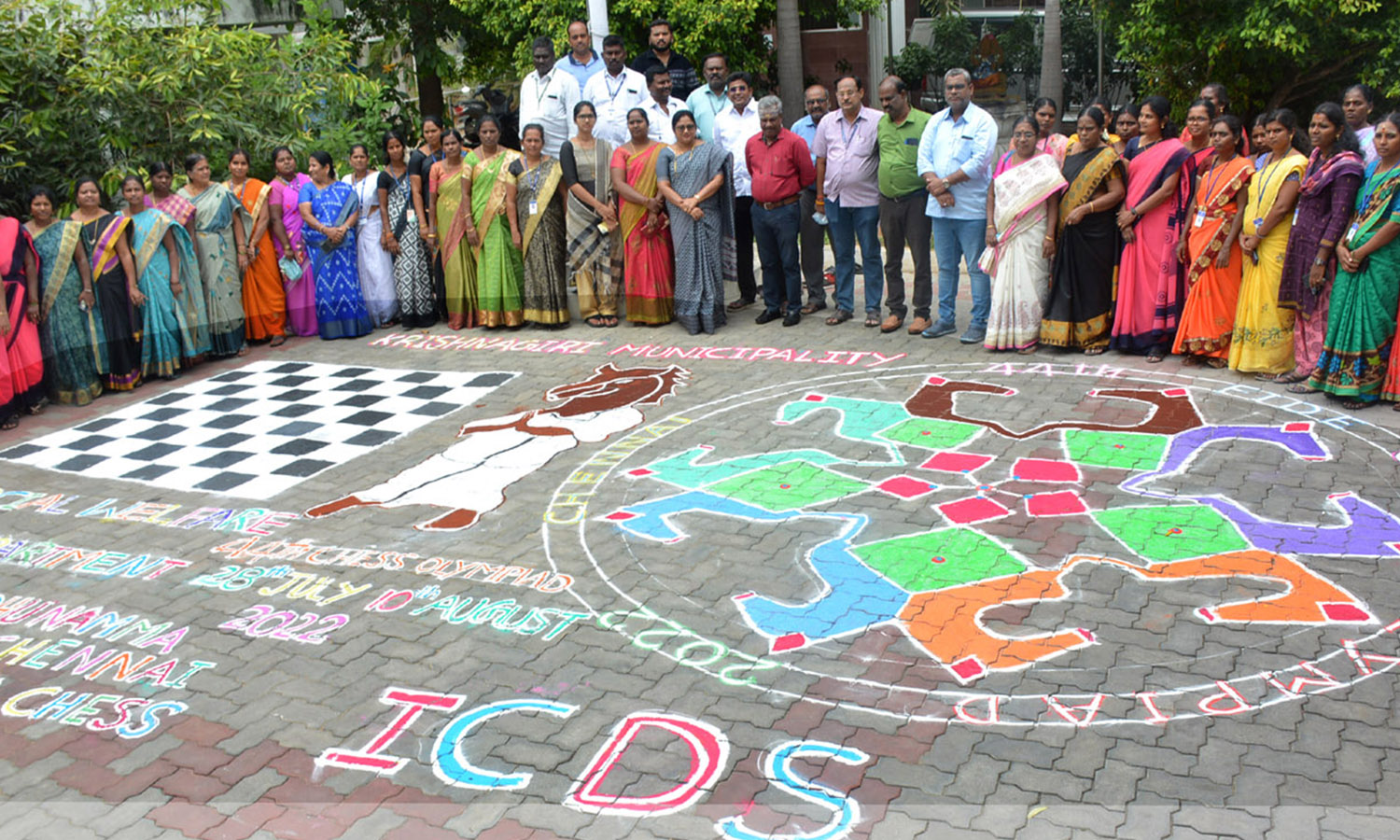 44வது செஸ் ஒலிம்பியாட் போட்டி: கிருஷ்ணகிரியில் ரங்கோலி கோலம்