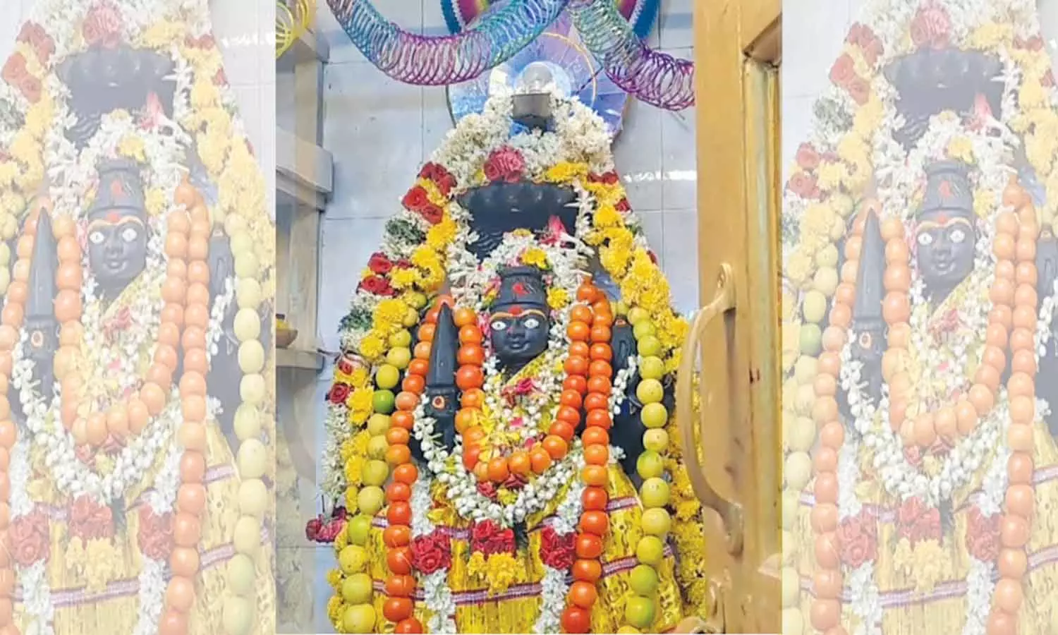 மலர் மாலை எலுமிச்சை பழம் மாலை உடன் சேர்த்து தக்காளியையும் மாலையாக அம்மனுக்கு மாலையாக அணிவிக்கப்பட்டது அதை தொடர்ந்து மகா தீபாரதனை காண்பிக்கப்பட்டது.