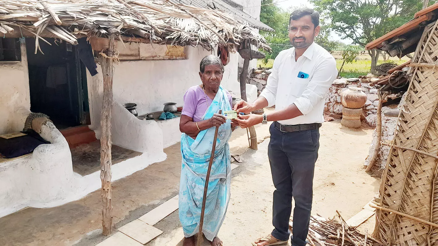 83 வயது முதியவருக்கு வீடு தேடி புதிய குடும்ப அட்டையை வழங்கிய வட்ட வழங்கல் அலுவலர்