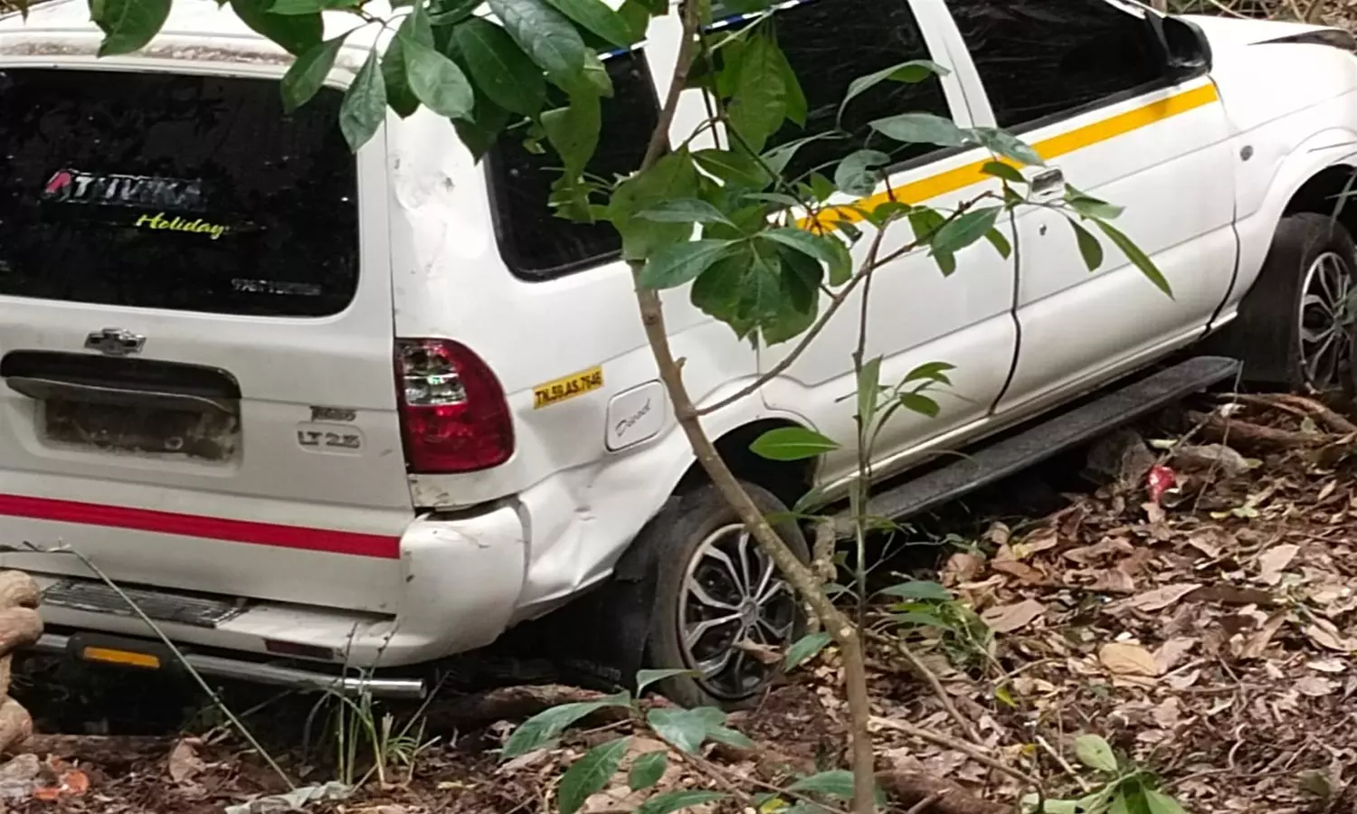 - ஒரு கட்டத்தில் தடுப்புச்சுவரை இடித்து தள்ளி விட்டு சாலையோரத்தில் உள்ள 5 அடி பள்ளத்துக்குள் கார் பாய்ந்தது.