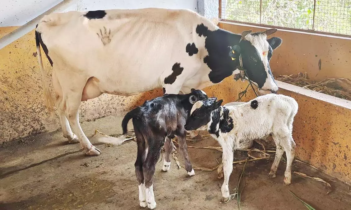 ஒரே பிரசவத்தில் 2 கன்றுகளை ஈன்ற பசு