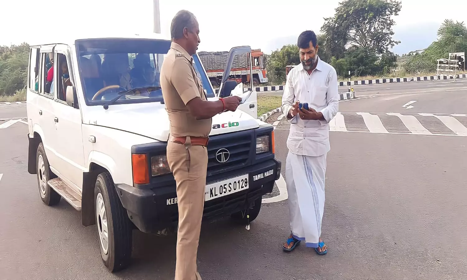 வாகன சோதனையில் ஆவணங்களை சரிபார்த்த அதிகாரி.