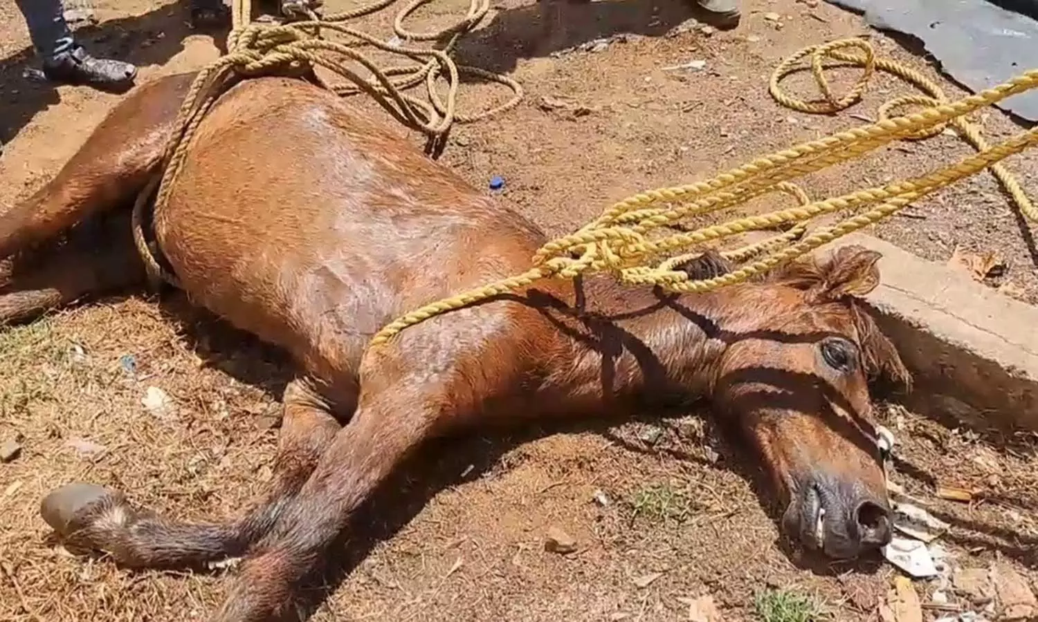 பள்ளத்தில் விழுந்த குதிரை உயிருடன் மீட்பு