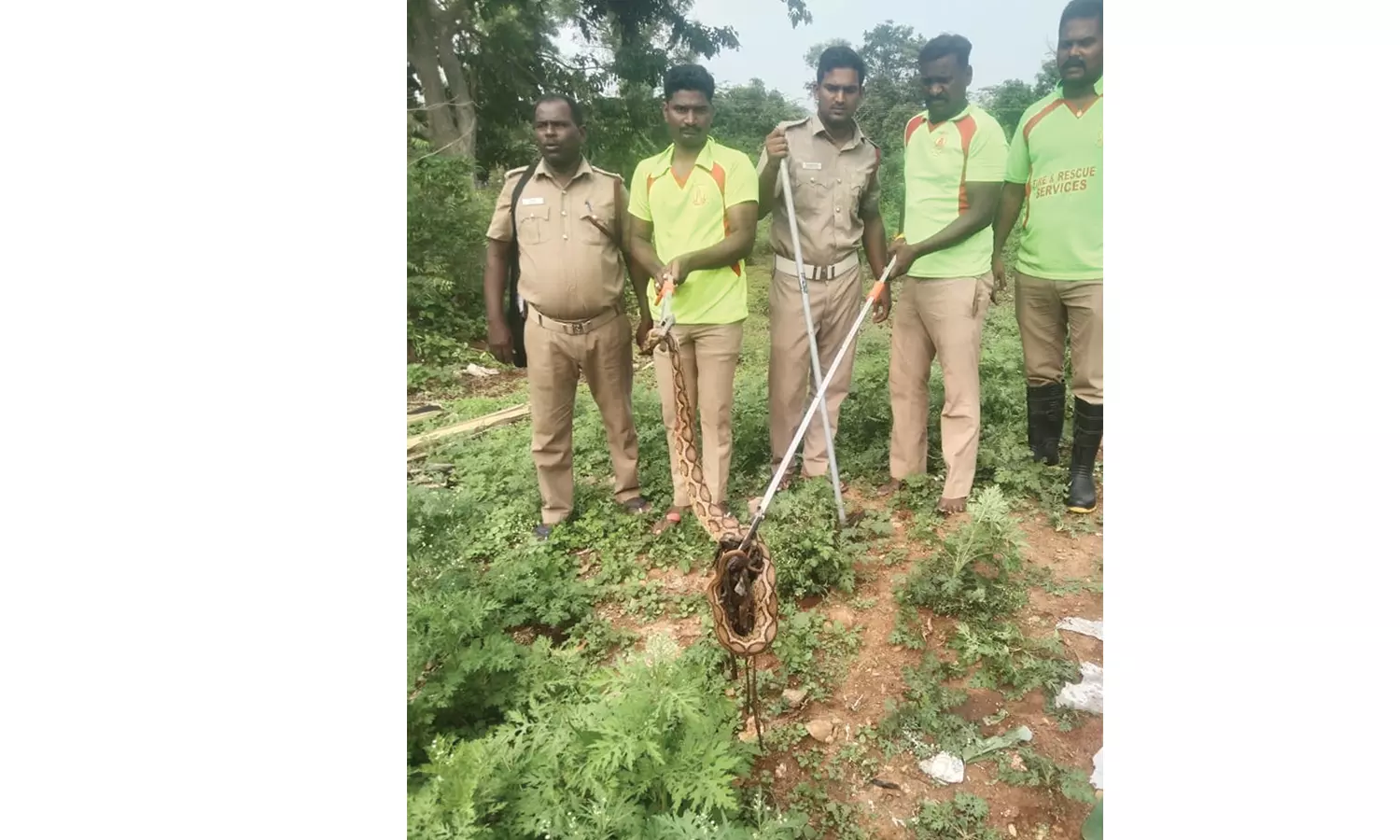- தீயணைப்புத்துறையினர் விரைந்து வந்து பாம்பை லாவகமாக பிடித்து வனத்துறையினரிடம் ஒப்படைத்தனர்.