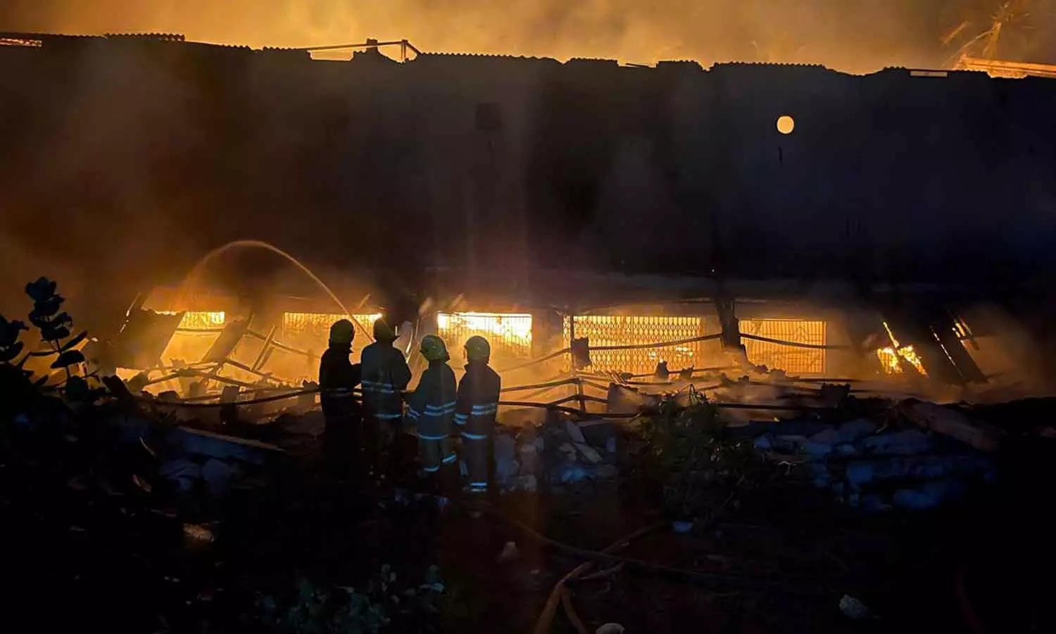 தகவலின் பேரில் சம்பவ இடத்திற்கு வந்த தீயணைப்பு துறையினர் தீயை அணைத்தனர். இருந்தாலும் தீ கட்டுக்குள் அடங்காமல் கொழுந்து விட்டு 100 அடி உயரத்திற்கு கரும் புகையுடன் எரிய தொடங்கியது.