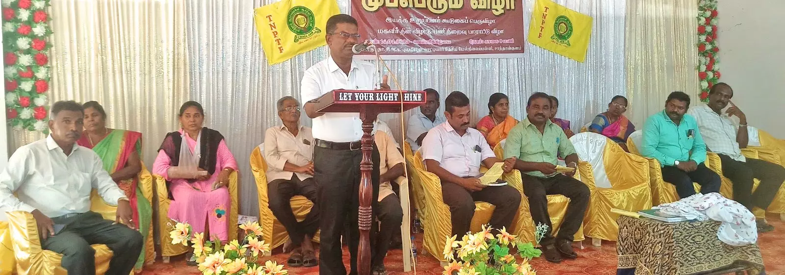 - தமிழக ஆரம்ப பள்ளி ஆசிரியர் கூட்டணி சாத்தான்குளம் வட்டக்கிளை சார்பில் முப்பெரும் விழா சாத்தான்குளத்தில் நடைபெற்றது.