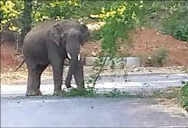 சாலையில் உலா வந்த காட்டு யானை