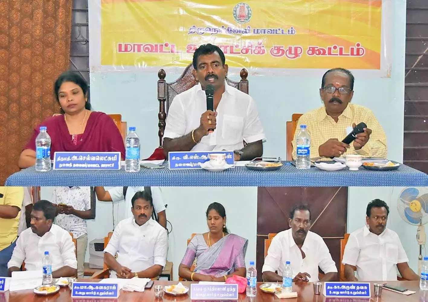 - பாளை கே.டி.சி.நகரில் உள்ள மாவட்ட பஞ்சாயத்து அலுவலகத்தில் மாவட்ட பஞ்சாயத்து கூட்டம் நடந்தது. மாவட்ட பஞ்சாயத்து தலைவர் வி.எஸ்.ஆர்.ஜெகதீஷ் தலைமை தாங்கினார்.