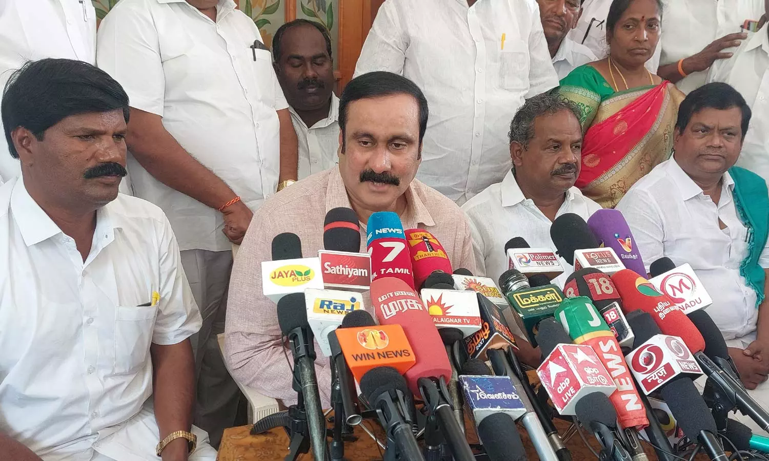 தருமபுரியில் பா.ம.க. தலைவர் அன்புமணி ராமதாஸ் பேட்டி அளித்த போது எடுத்தபடம்