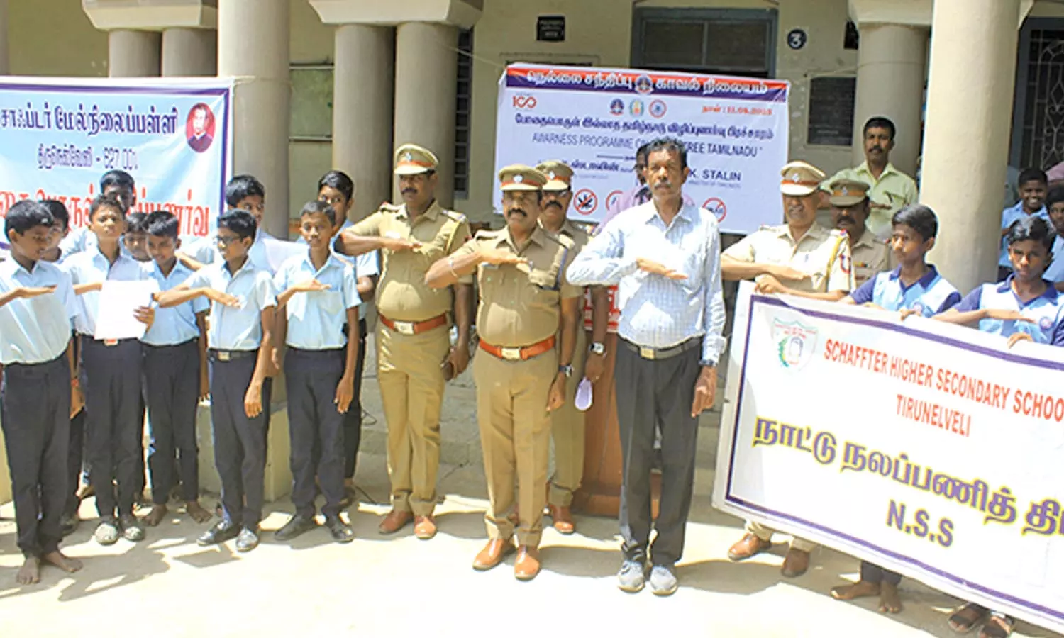நெல்லை சாப்டர் பள்ளியில் நடைபெற்ற விழிப்புணர்வு உறுதிமொழி நிகழ்ச்சியில் துணை போலீஸ் கமிஷனர் சரவணகுமார் கலந்துகொண்டு போதை பொருள் பழக்கத்தால் ஏற்படும் தீமைகள் குறித்தும் அதன் விளைவுகள் குறித்தும் மாணவர்களிடையே எடுத்து கூறினார். தொடர்ந்து ஆயிரத்திற்கும் மேற்பட்ட மாணவர்கள் போதைப்பொருள் பயன்பாட்டிற்கு எதிரான உறுதி மொழியை எடுத்துக் கொண்டனர்.