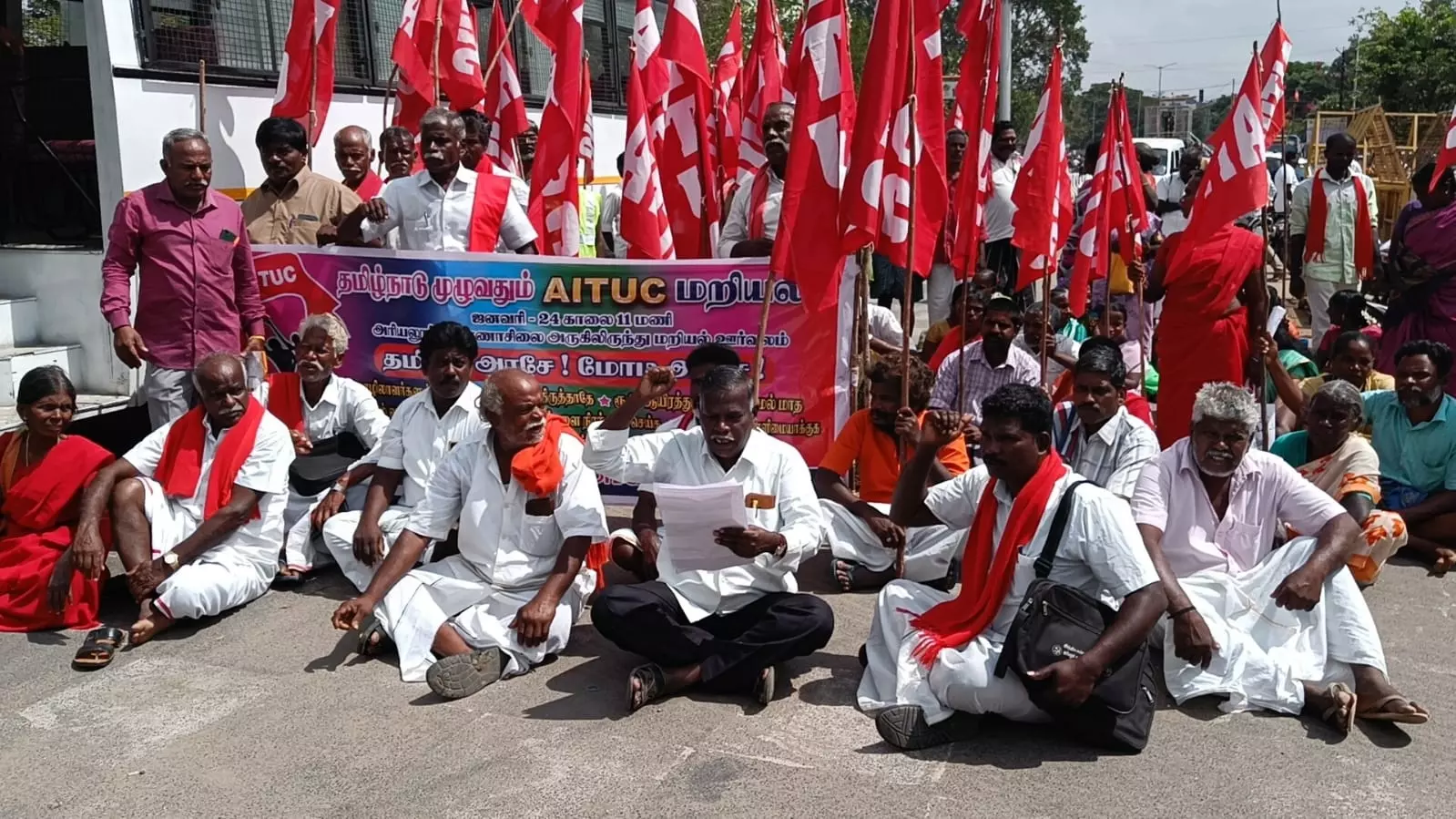 - அரியலூரில் போராட்டத்தில் ஈடுபட்ட ஏ.ஐ.டி.யு.சி.யினர் 82 பேர் கைது செய்யபட்டனர்