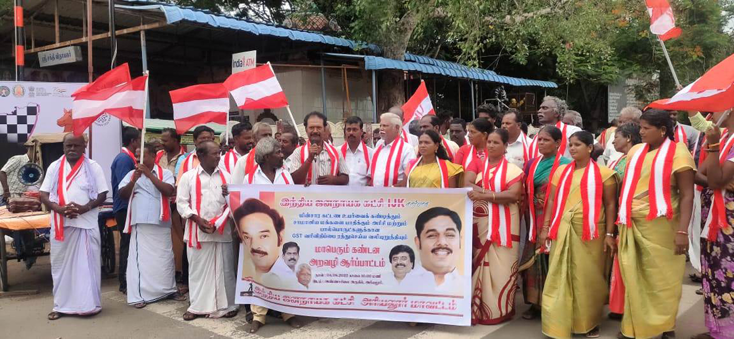 அரியலூர் பேருந்து நிலையம் அருகில் இந்திய ஜனநாயக கட்சி சார்பில் மின் கட்டண உயர்வை திரும்ப பெற வலியுறுத்தி, அரிசி, பருப்பு, பால், கோதுமை உள்ளிட்ட அத்தியாவசிய உணவுப் பொருட்கள் மீது ஜிஎஸ்டி வரி உயர்வு, வரி உயர்வை திரும்ப பெற கோரியும், பெட்ரோல், டீசல், விலை உயர்வை கண்டித்தும் கண்டன ஆர்ப்பாட்டம் நடைபெற்றது. இந்த ஆர்ப்பாட்டத்தில் மாநிலத் துணைச் செயலாளர் கதிர் கணேசன், மாவட்ட பொருளாளர் வெற்றிச்செல்வன், அருள்கணேசன், ஒன்றிய தலைவர்கள் அரியலூர் கோவிந்தராஜ், திருமானூர் குமாரசாமி, செந்துறை சுந்தரமூர்த்தி, செய்தி தொடர்பாளர் அழகுசங்கர், மகளிர் அணி பச்சையம்மாள், சுமதி, பார்க்கவலம் முன்னேற்ற சங்க பொறுப்பாளர்கள் கலியமூர்த்தி, பச்சமுத்து, பன்னீர்செல்வம், குமார் உட்பட அனைத்து பிரிவு பொறுப்பாளர்களும் கலந்து கொண்டனர்.