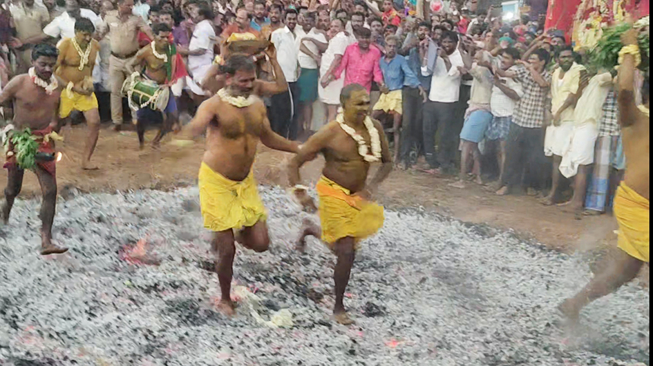 முன்னதாக கோவிலில் திரௌபதி அம்மனுக்கு சிறப்பு அபிஷேகம் மற்றும் அலங்காரம் செய்யப்பட்டது. பின்னர் திரவுபதி அம்மன் தீக்குழி முன்பு எழுந்தருளினார். அதனைத் தொடர்ந்து விழாக் குழுவினர் தீக்குழியில் எரிந்து கொண்டிருந்த நெருப்புகளை சமப்படுத்தினர். பின்னர் விழாக் குழுவினர் தீமித்ததனர். அதன் பின்னர் 100 க்கும் மேற்பட்ட பக்தர்கள் தீ மிதித்து தங்களது நேர்த்தி கடனை செலுத்தினர்.