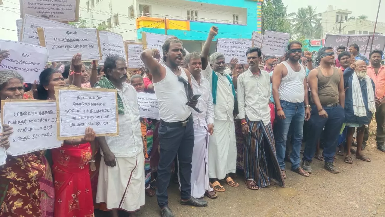 - நிரந்தரப் பணி வழங்க கோரி ஆனந்தவாடி கிராம மக்கள் போராட்டம்