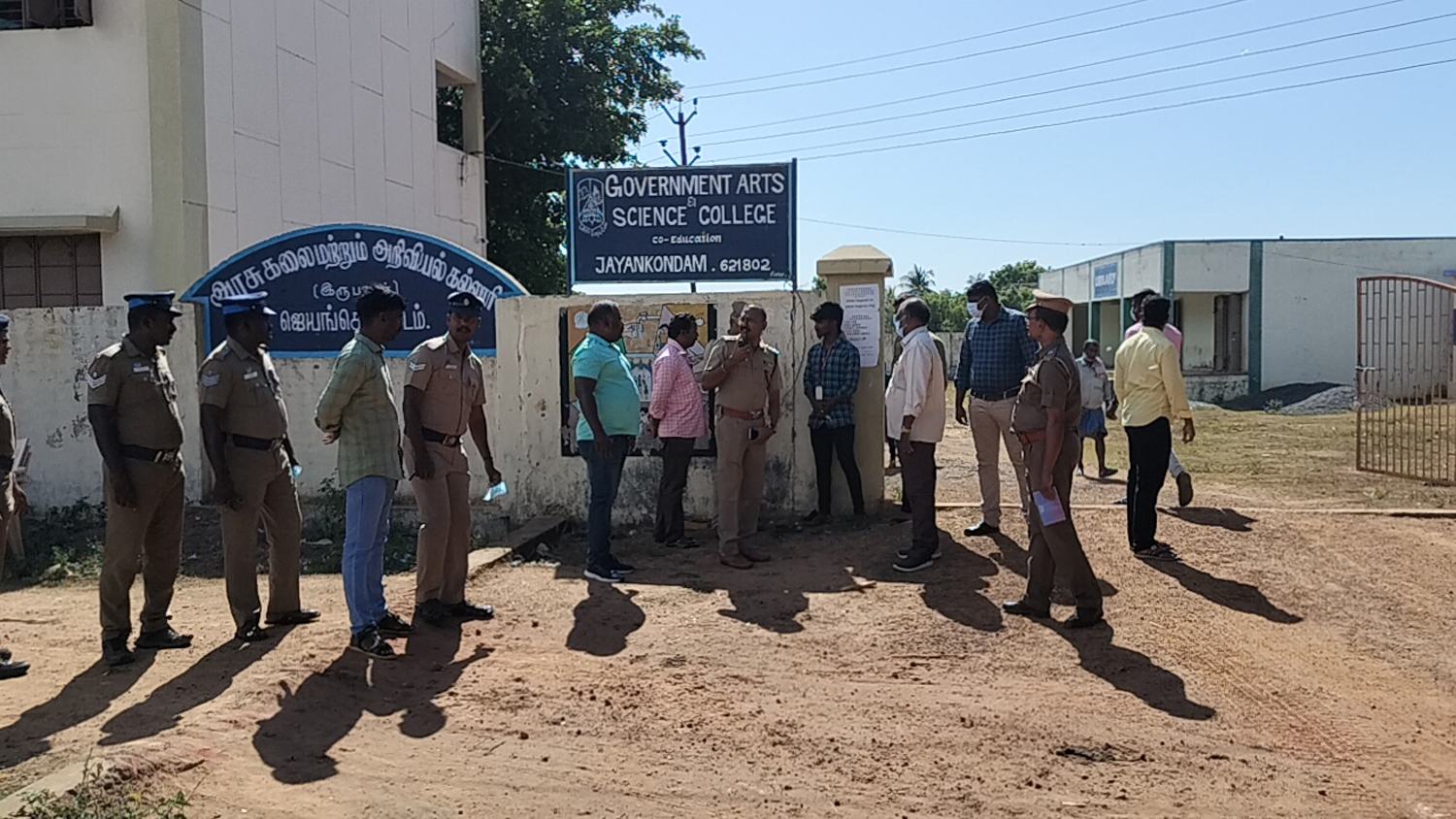 சின்னசேலம் பள்ளி சம்பவத்தைக் கண்டித்து, அரியலூா் மாவட்டம், ெஜயங்கொண்டம் அரசு கலை மற்றும் அறிவியல் கல்லூரி மாணவா்கள் கல்லூரில் வளாகத்தில் உள்ளிருப்புப் போராட்டத்தில் ஈடுபடப் போவதாக ெஜயங்கொண்டம் போலீசாருக்கு தகவல் கிடைத்தது.