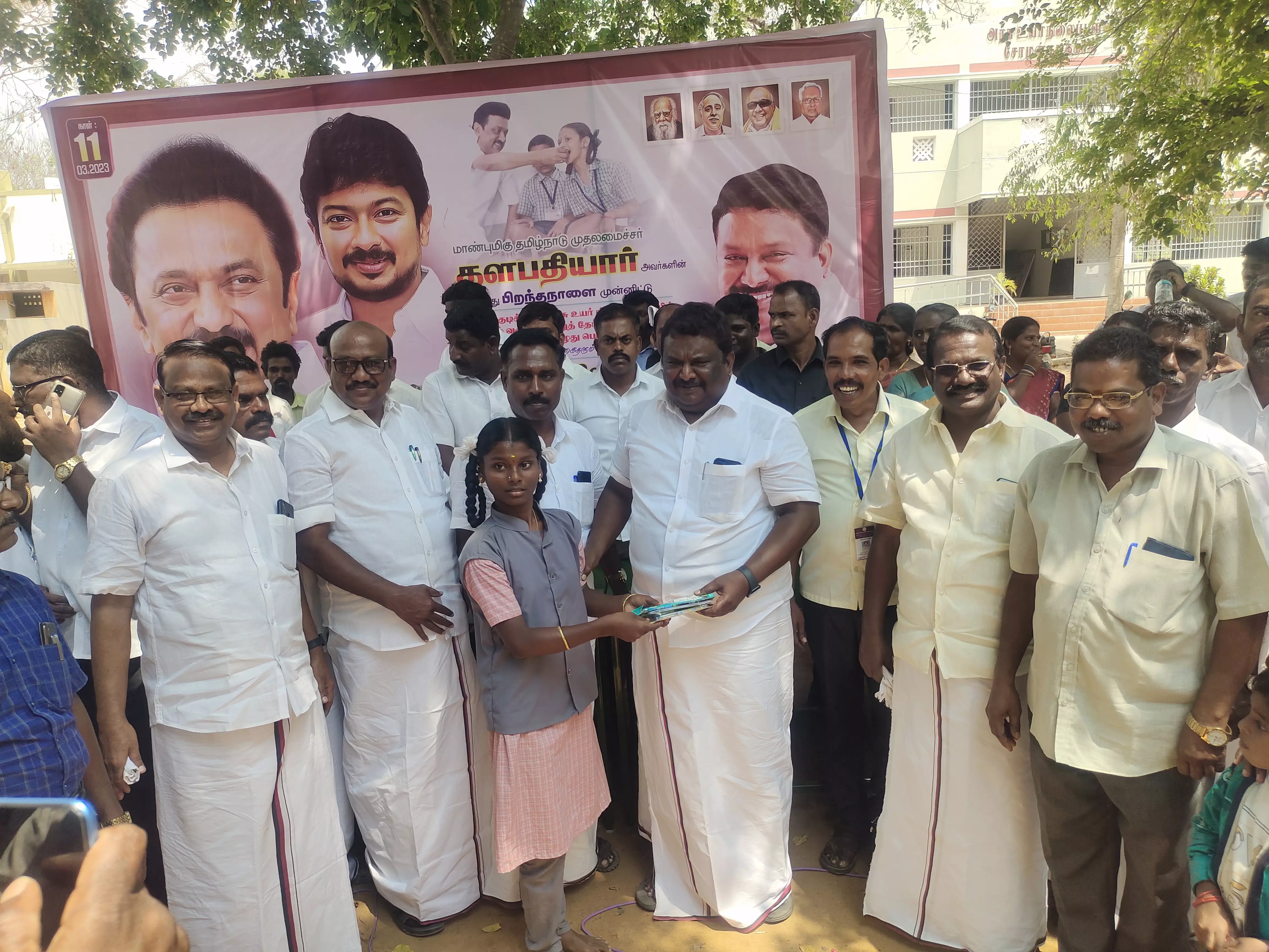 அரியலூர் மாவட்டம் செந்துறை பகுதிகளில் பல்வேறு நிகழ்ச்சிகளில் பங்கேற்க போக்குவரத்து துறை அமைச்சர் சிவசங்கர் வருகை தந்தார். அதன்படி செந்துறை பகுதிகளில் உள்ள பொன்பரப்பி அரசு பள்ளி, சோழன் குடிக்காடு மற்றும் முள்ளுக்குறிச்சி அரசு பள்ளிகளில் 10 மற்றும் 12 ஆம் வகுப்புகளில் கடந்த ஆண்டு முதல் 3 இடங்களில் வெற்றி பெற்ற மாணவ, மாணவிகளுக்கு பரிசுகள் வழங்கி பாராட்டினார்.அப்போது படைவெட்டி குடிக்காடு கிராமம் மற்றும் சுற்றுவட்டார பகுதிகளில் 500 ஏக்கருக்கும் மேற்பட்ட நெல் சாகுபடி செய்ய ப்படுகிறது. இந்நிலையில் இப்பகுதியில் உள்ள விவசாயிகள் தங்களுடைய நெல்லை 6 கி.மீட்டர் தூரம் கடந்து குழுமூரில் உள்ள நெல் கொள்முதல் நிலையத்தில் நெல்லை கொடுத்து வந்தனர். அவர்கள் தங்களுக்கு போக்குவரத்து செலவு கூடுதலாக ஆவதால் 12 கிராம மக்களுக்கு தனியாக ஒரு நெல் கொள்முதல் நிலையம் அமைக்க பல ஆண்டுகாலம் கோரிக்கை வைத்த நிலையில் அமைச்சர் சிவசங்கர் உத்திரவின் பேரில் கடந்த 6 -ந்தேதி படைவெட்டிகு டிகாடு கிராமத்தில் நெல் கொள்முதல் நிலையம் திறக்கப்பட்டது.இதை போக்குவரத்து துறை அமைச்சர் எஸ்.எஸ்.சிவசங்கர் திடீர் ஆய்வு செய்தார். நாள் ஒன்றுக்கு எவ்வளவு நெல் கொள்முதல் செய்யப்படுகிறது எனவும் விரைவாக நெல்லுக்கான பணத்தை வங்கில் செலுத்த வேண்டும் என அதிகாரிகளுக்கு உத்திரவிட்டனர். இந்த நெல் கொள்முதல் நிலையத்தில் 15 ஆயிரம் மூட்டை நெல் கொள்முதல் செய்யப்பட திட்ட மிட்டுள்ளதாக அதிகாரிகள் கூறினர். இந்த நிகழ்ச்சிகளில் அரசு அதிகாரிகள் மற்றும் கட்சி நிர்வாகிகள் திரளானோர் கலந்து கொண்டனர்.