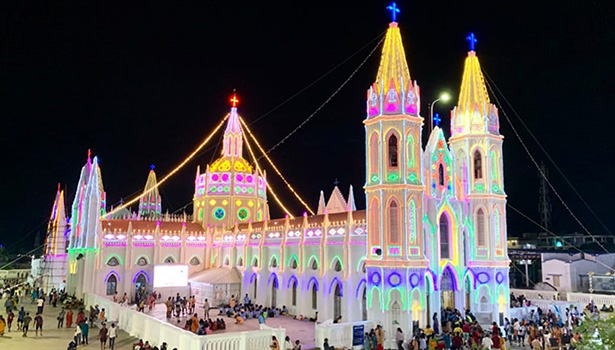 திருவிழாவை முன்னிட்டு வேளாங்கண்ணி மாதா பேராலயம் மின்விள க்குகளால் அலங்கரிக்கப்பட்டு மின்னொளியில் ஜொலிக்கிறது.