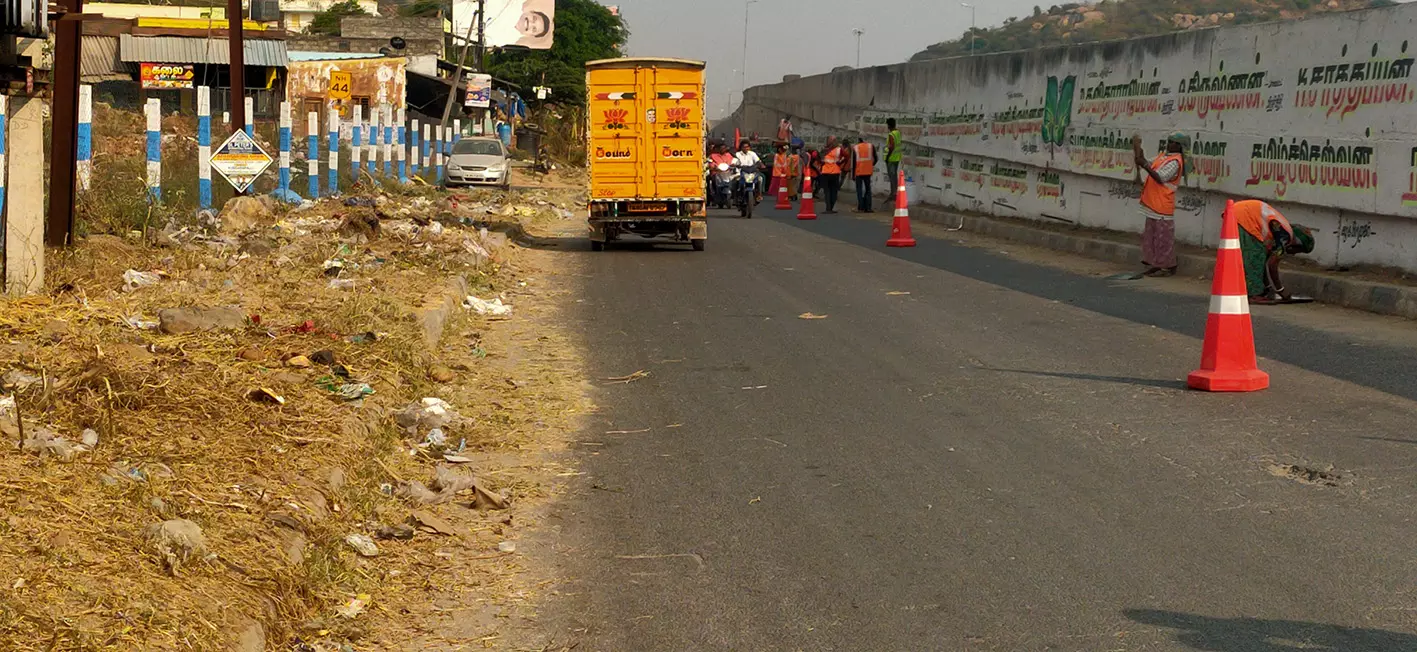 - தேசிய நெடுஞ்சாலைதுறை சார்பில் சாலை ஒரமாக ஒரு பகுதியில் மட்டும் கழிவுகள் சுத்தம் செய்தனர்.