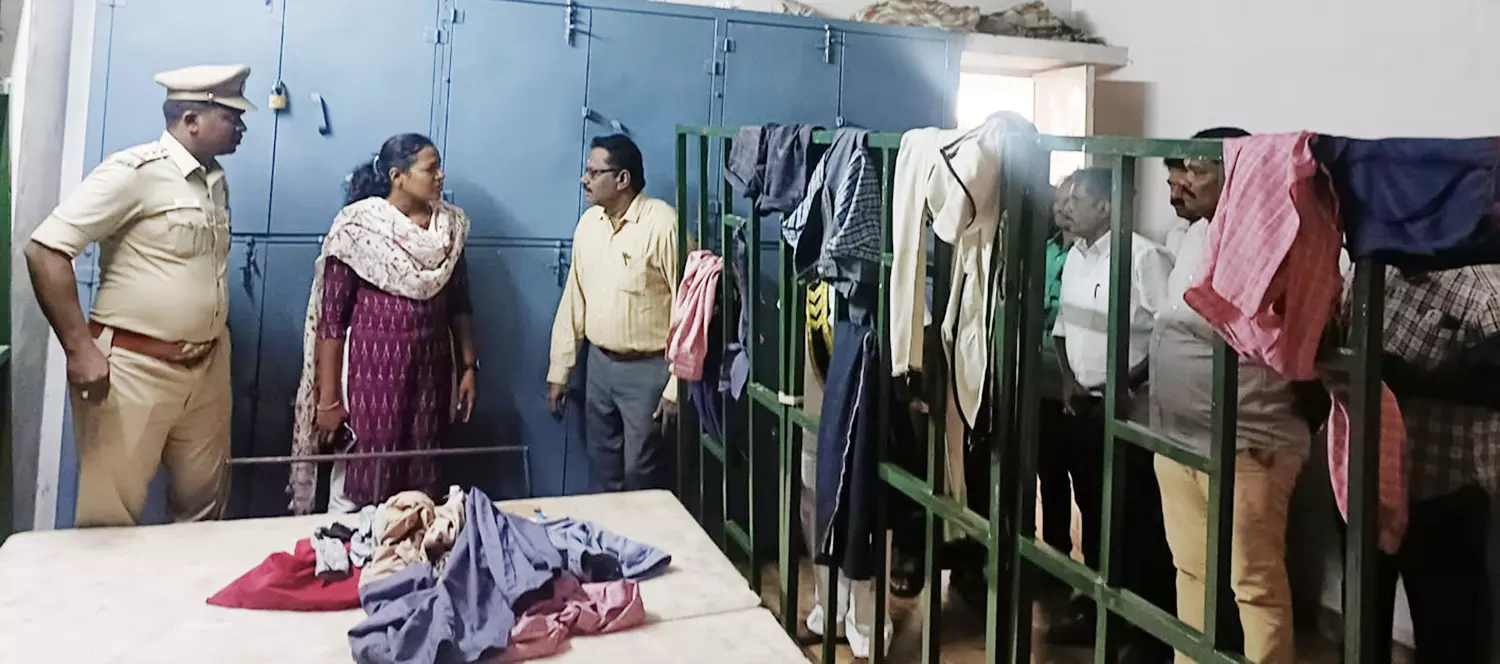விடுதியில் அதிகாரிகள் ஆய்வு செய்து விசாரணை மேற்கொண்ட போது எடுத்த படம்.