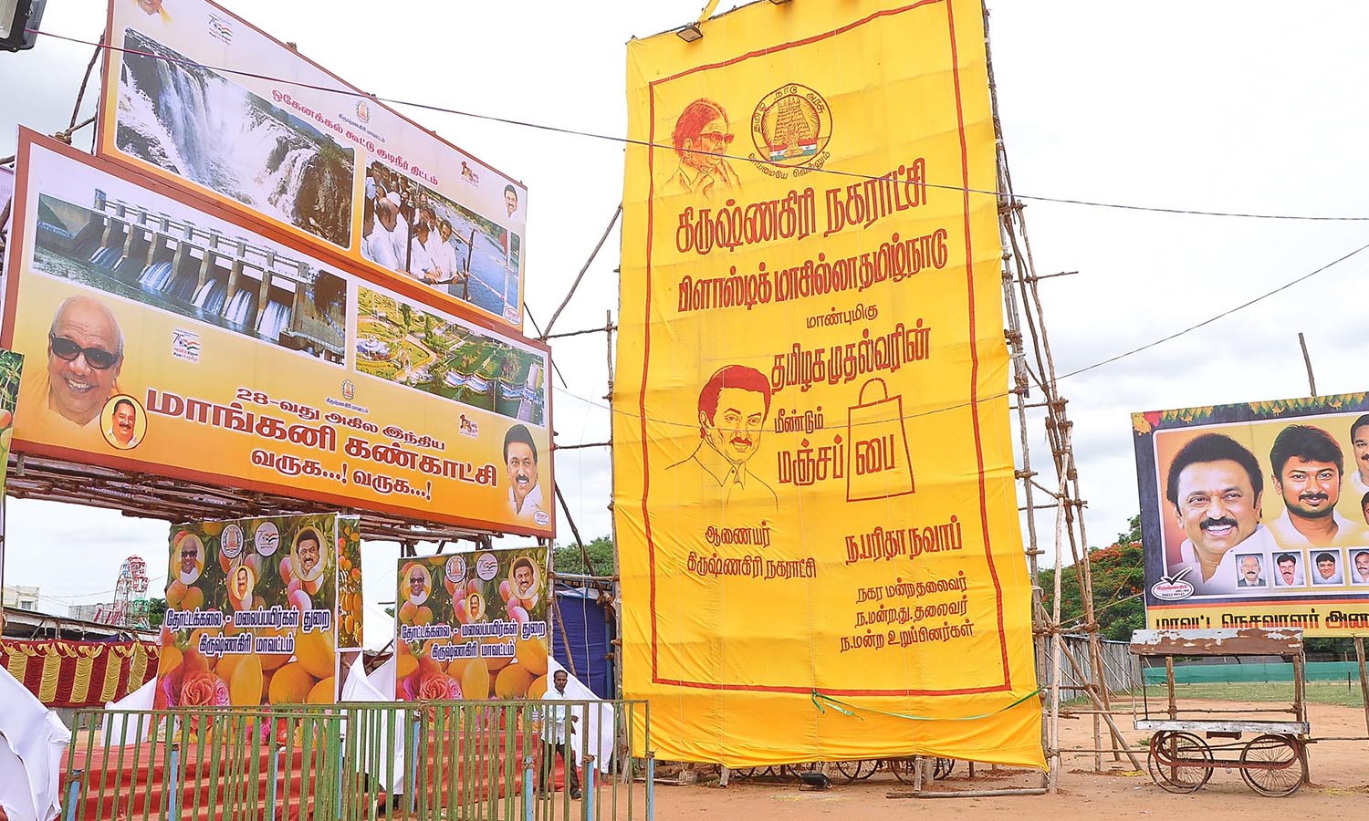 கிருஷ்ணகிரி மாங்கனி கண்காட்சியில் மெகா சைஸ் மஞ்சள் பை வைத்து விழிப்புணர்வு