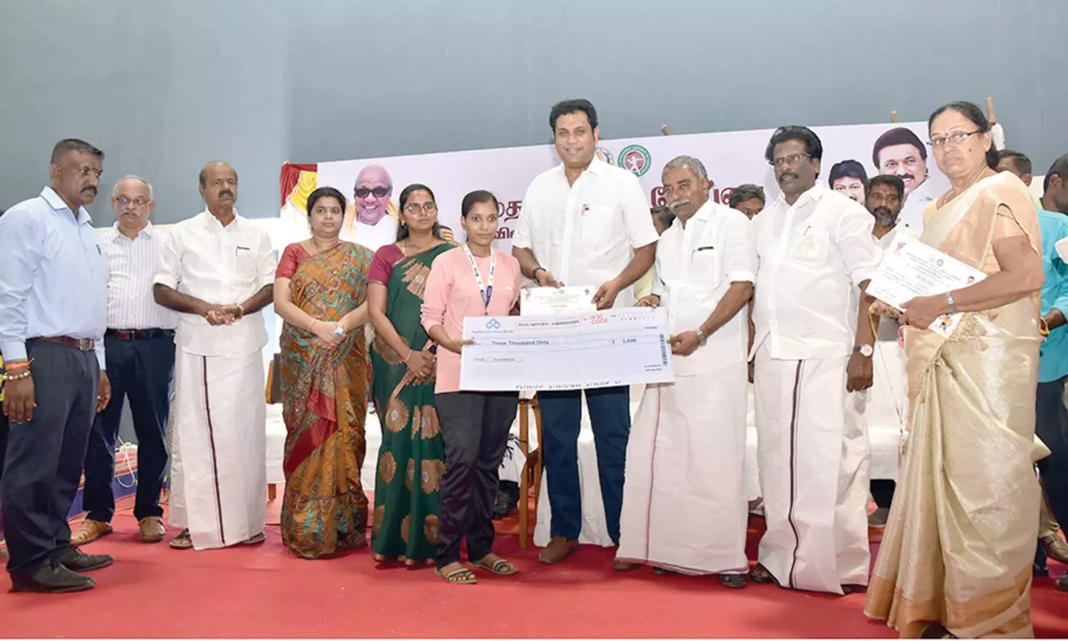 போட்டியில் வெற்றிபெற்றவர்களுக்கு அமைச்சர் டி.ஆர்.பி.ராஜா பரிசு வழங்கினார்.