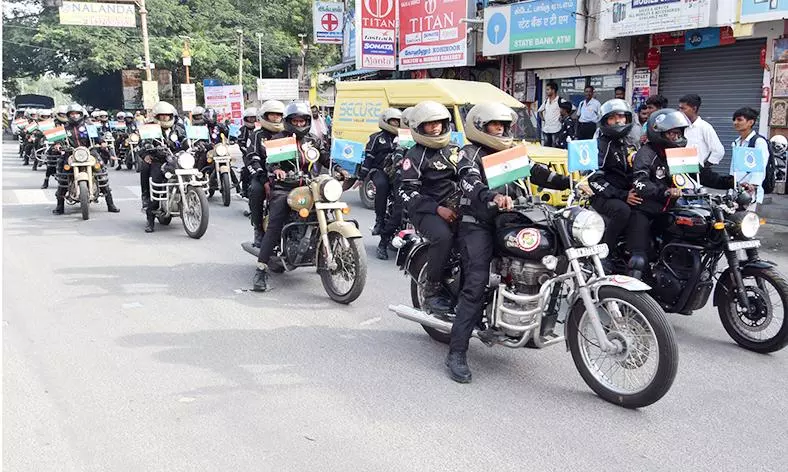 ஜம்மு மற்றும் காஷ்மீர் (ஸ்ரீநகர்), மேகாலாயா (சில்லாங்), தமிழ்நாடு கன்னியாகுமரி ஆகிய 3 இடங்களில் இருந்து தொடங்கி 75 மோட்டார்சைக்கிளில் எல்லை பாதுகாப்பு படை வீராங்கனைகள், 15 மாநிலங்கள் மற்றும் 2 யூனியன் பிரதேசங்கள் என 10 ஆயிரம் கிலோ மீட்டர் கடந்து குஜராத் மாநிலம் ஏக்தா நகர் சென்றடைகின்றனர்.