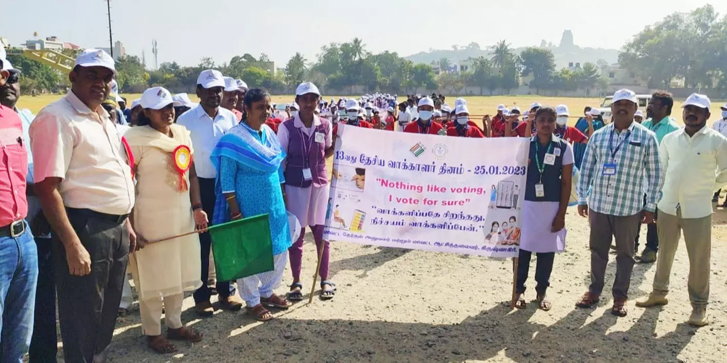 கிருஷ்ணகிரி மாவட்டம் ஓசூரில் 13-வது தேசிய வாக்காளர் தினத்தை முன்னிட்டு நேற்று விழிப்புணர்வு பேரணி நடைபெற்றது.