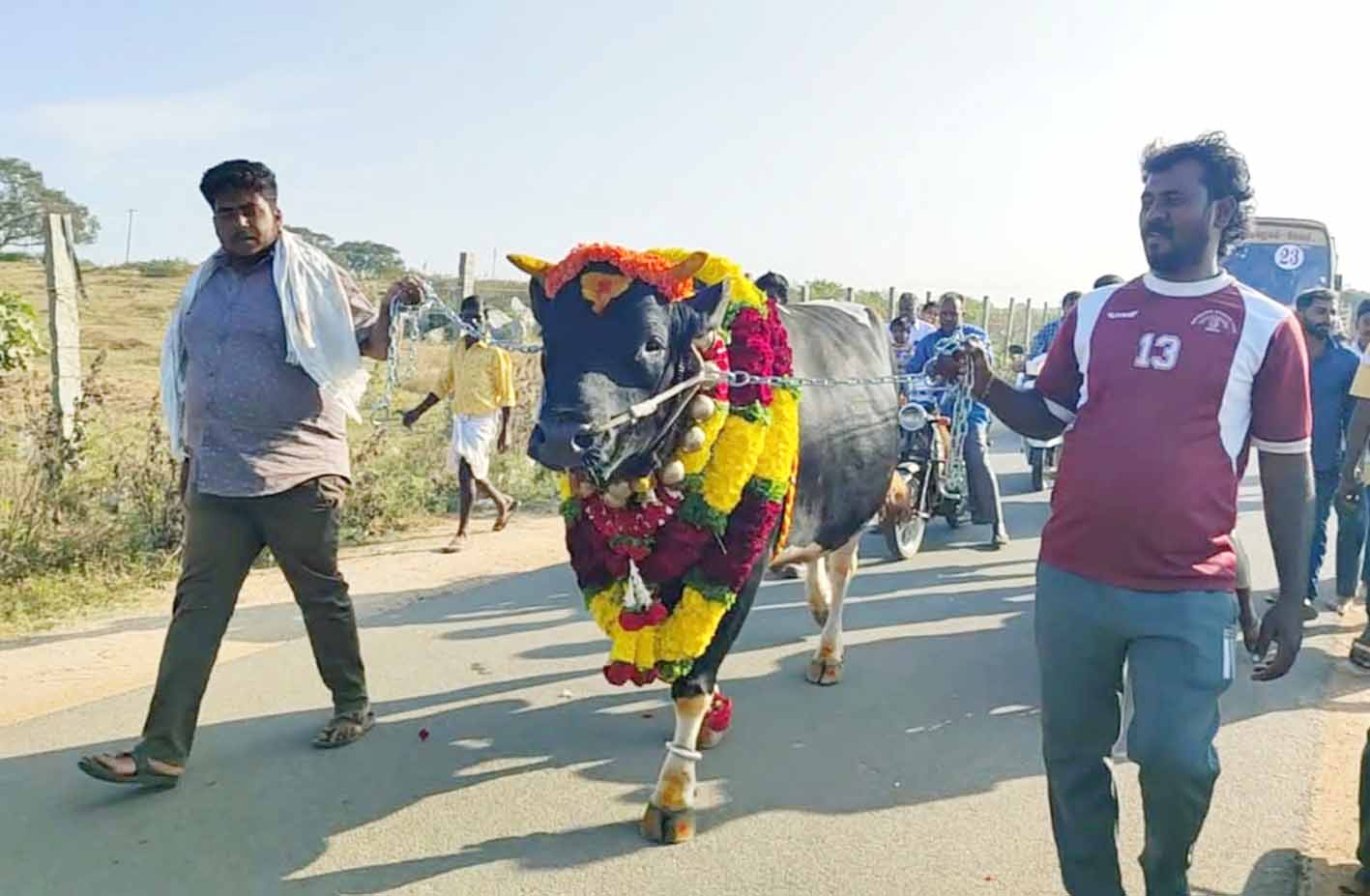 நேற்று, கர்நாடகா மாநிலம் பெங்களூரு அருகேயுள்ள ஒயிட்பீல்ட் பகுதியிலிருந்து அழைத்துவரப்பட்ட பாகுபலி என்ற பெயரிலான காளை மாடு அனைவரின் கவனத்தை ஈர்த்தது. இதனை பார்த்து பொதுமக்கள் வியந்து ஆர்வத்துடன் செல்பி எடுத்துக்கொண்டனர்.