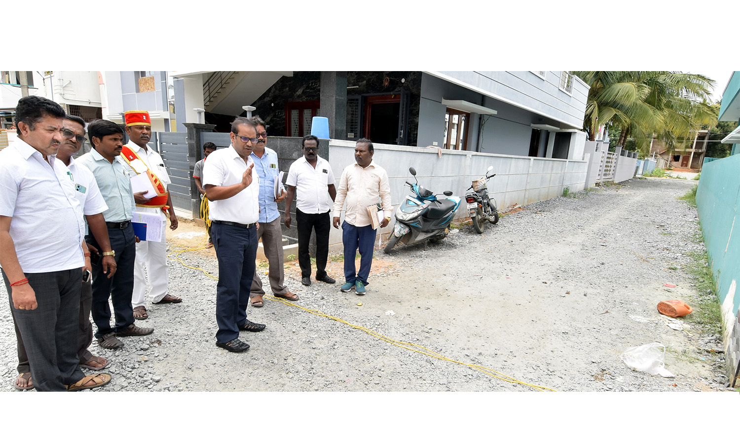 - கட்டுமான பணிகளுக்கு பயன்படுத்தப்படும் செங்கல், சிமெண்ட் கலவை தரம் குறித்து ஆய்வு செய்தார்.