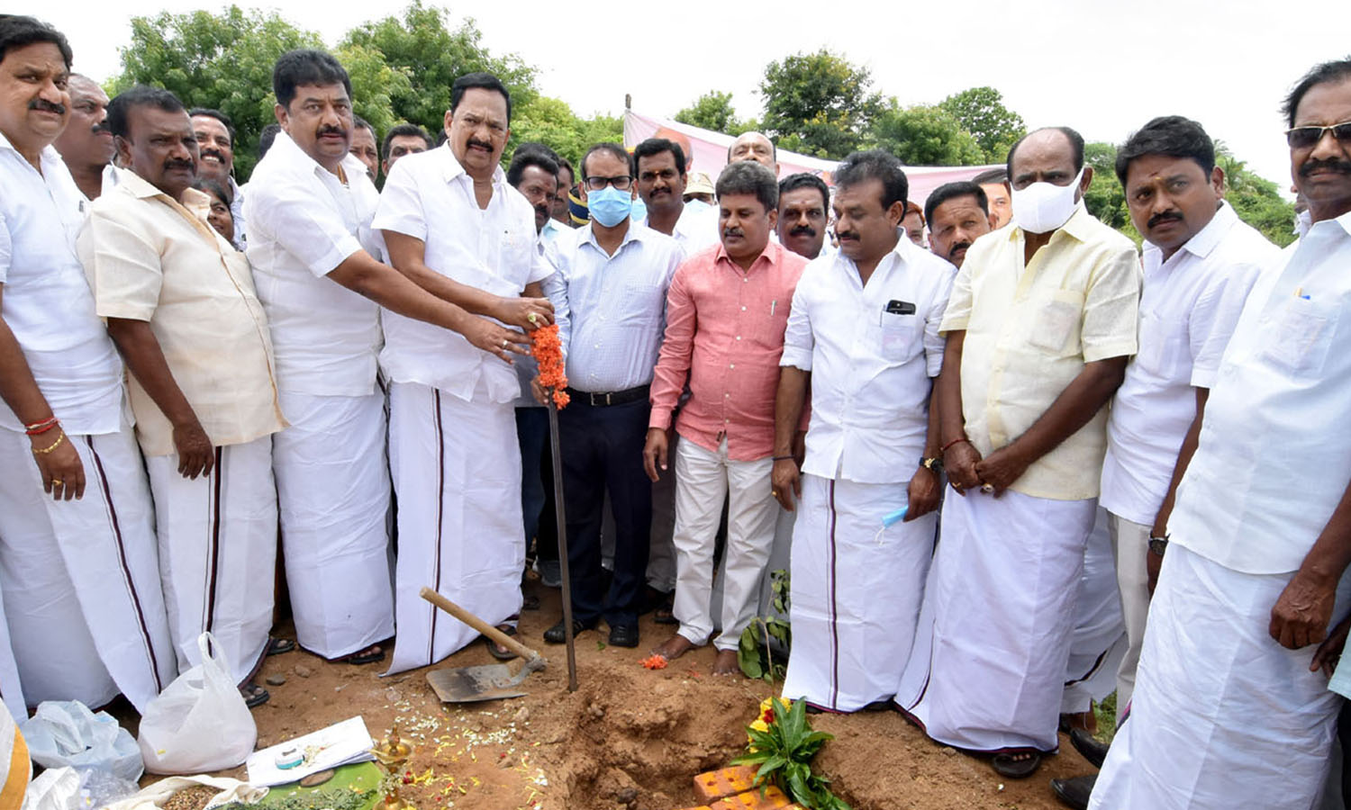 நிகழ்ச்சியில் தமிழக கைத்தறி மற்றும் துணிநூல் துறை அமைச்சர் காந்தி கலந்து கொண்டு பூமிபூஜை செய்து பணிகளை தொடங்கி வைத்தார்.