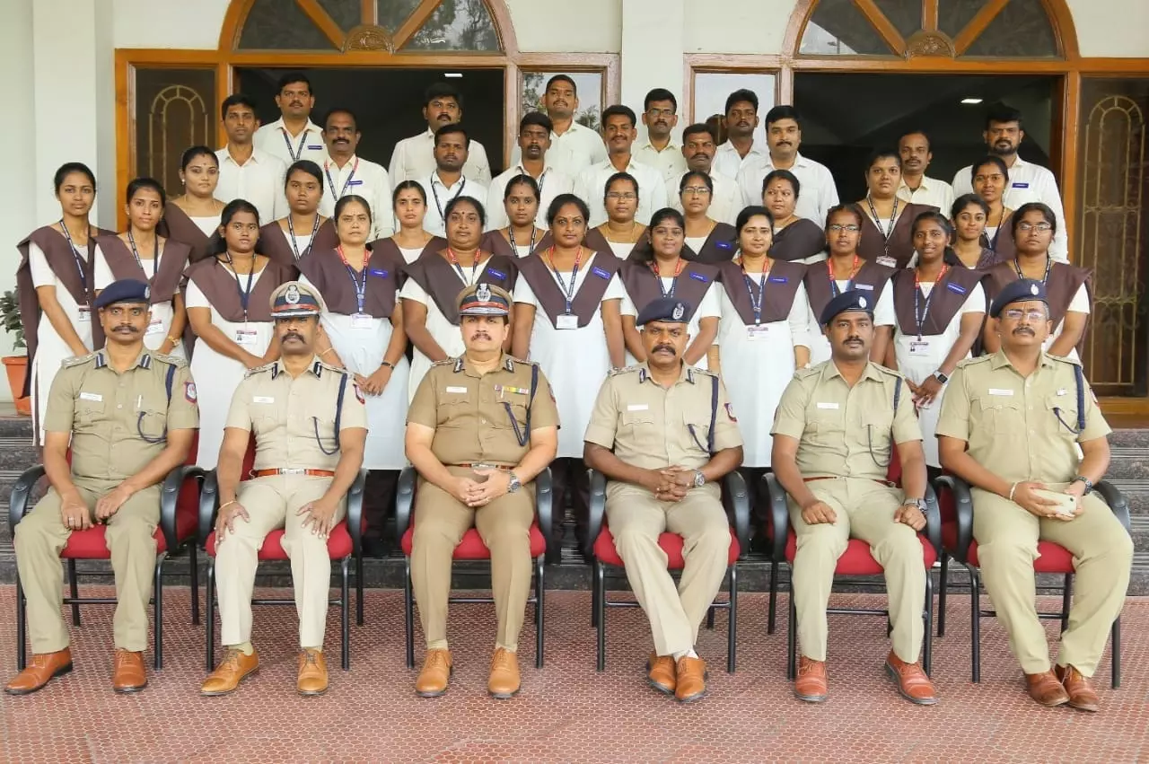 பின்னர் போலீஸ் நிலையங்களில் வரவேற்பாளராக பணியாற்றும் போலீசாருடன், சட்டம் ஒழுங்கு கூடுதல் டி.ஜி.பி சங்கர் குழு புகைப்படம் எடுத்து கொண்டார்.