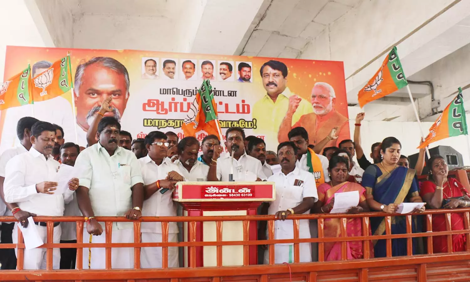 மாவட்ட தலைவர் தயாசங்கர் தலைமையில் ஆர்ப்பாட்டத்தில் ஈடுபட்ட பா.ஜ.க.வினர்.