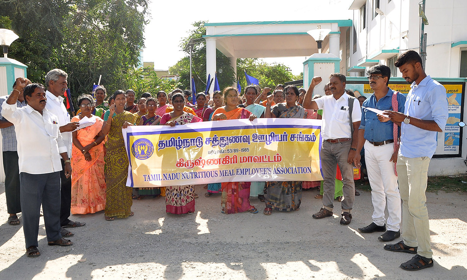 இந்த ஆர்ப்பாட்டத்தின் போது, வரையறுக்கப்பட்ட காலமுறை ஊதியத்தில் காலிப்பணியிடங்களை நிரப்பாமல், சத்துணவு திட்டத்தில் காலை சிற்றுண்டியை தனியாரிடம் ஒப்படைப்பதை கைவிட வேண்டும். மேலும் காலைச் சிற்றுண்டியை சத்துணவு ஊழியர்களே வழங்க அரசாணை வெளியிட வேண்டும் என்பதை வலியுறுத்தி கோஷங்கள் எழுப்பினர்.