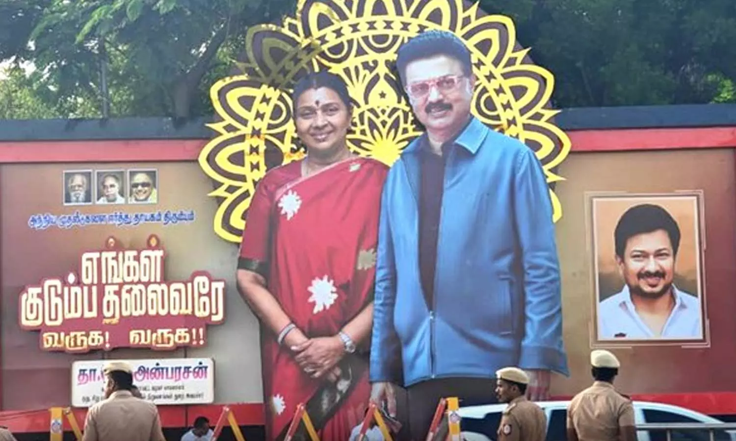 - முதலமைச்சர் மு.க.ஸ்டாலினை வரவேற்று வழிநெடுகிலும் பேனர்கள் வைக்கப்பட்டுள்ளது