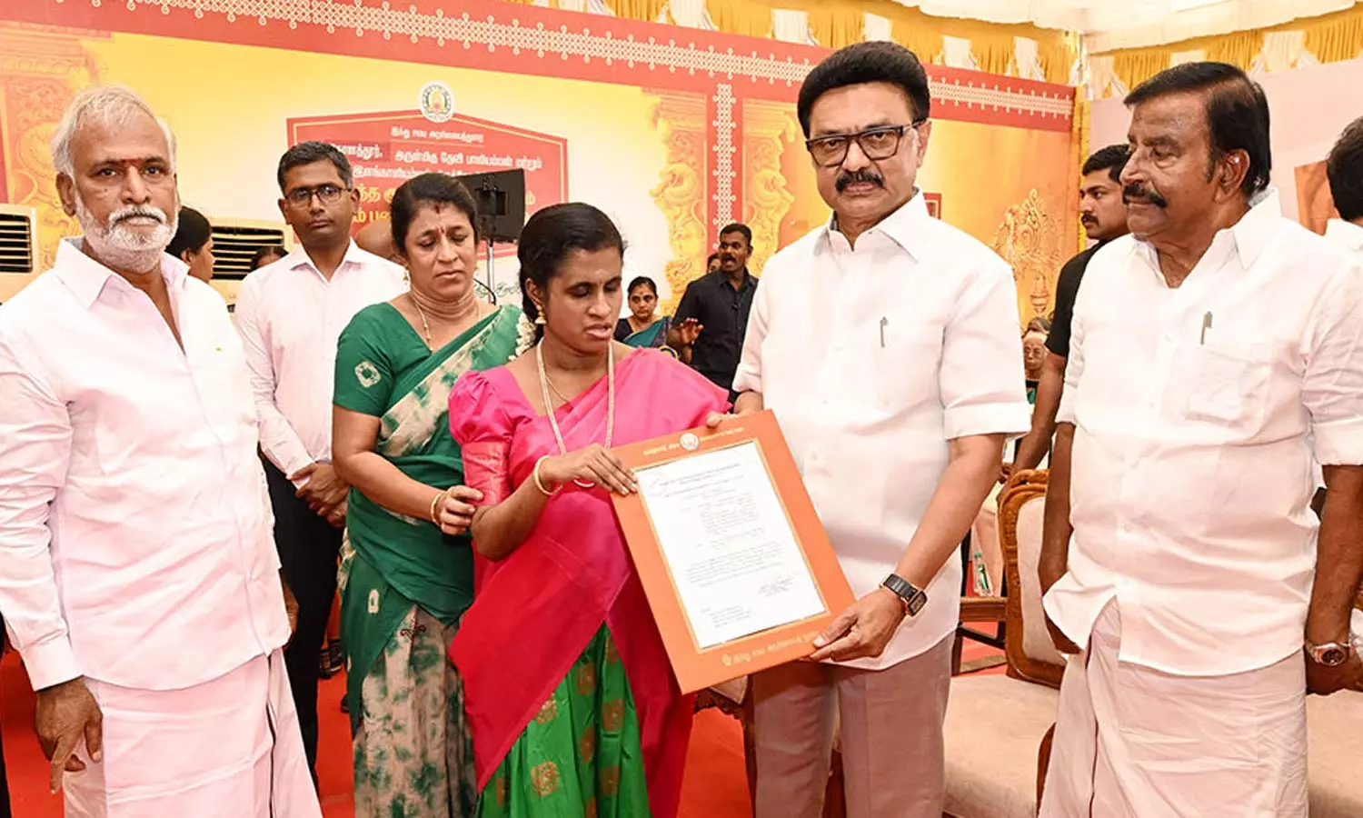 - மாற்றுத்திறனாளி பிரியவதனா என்பவருக்கு பெண் ஓதுவாருக்கான பணி நியமன ஆணையை முதலமைச்சர் மு.க. ஸ்டாலின் வழங்கினார்.