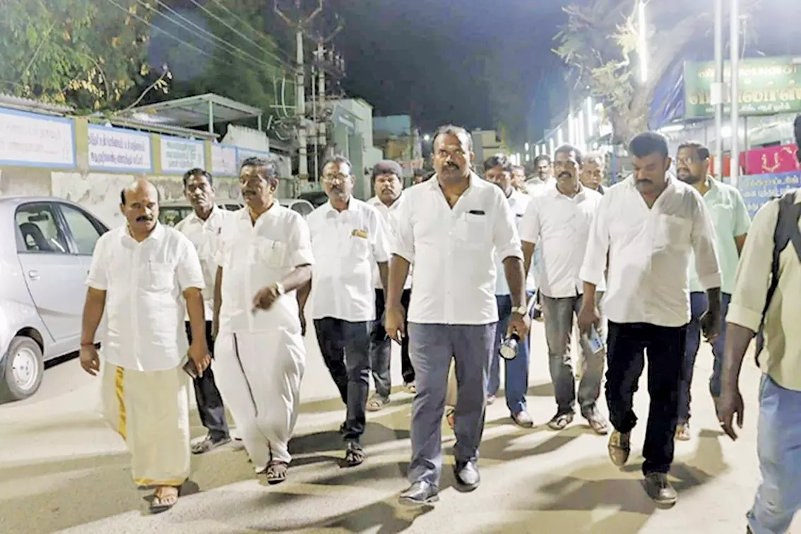 சிவன் கோவில் ரதவீதிகளில் மேயர் ஜெகன் பெரியசாமி ஆய்வு செய்த போது எடுத்த படம்.