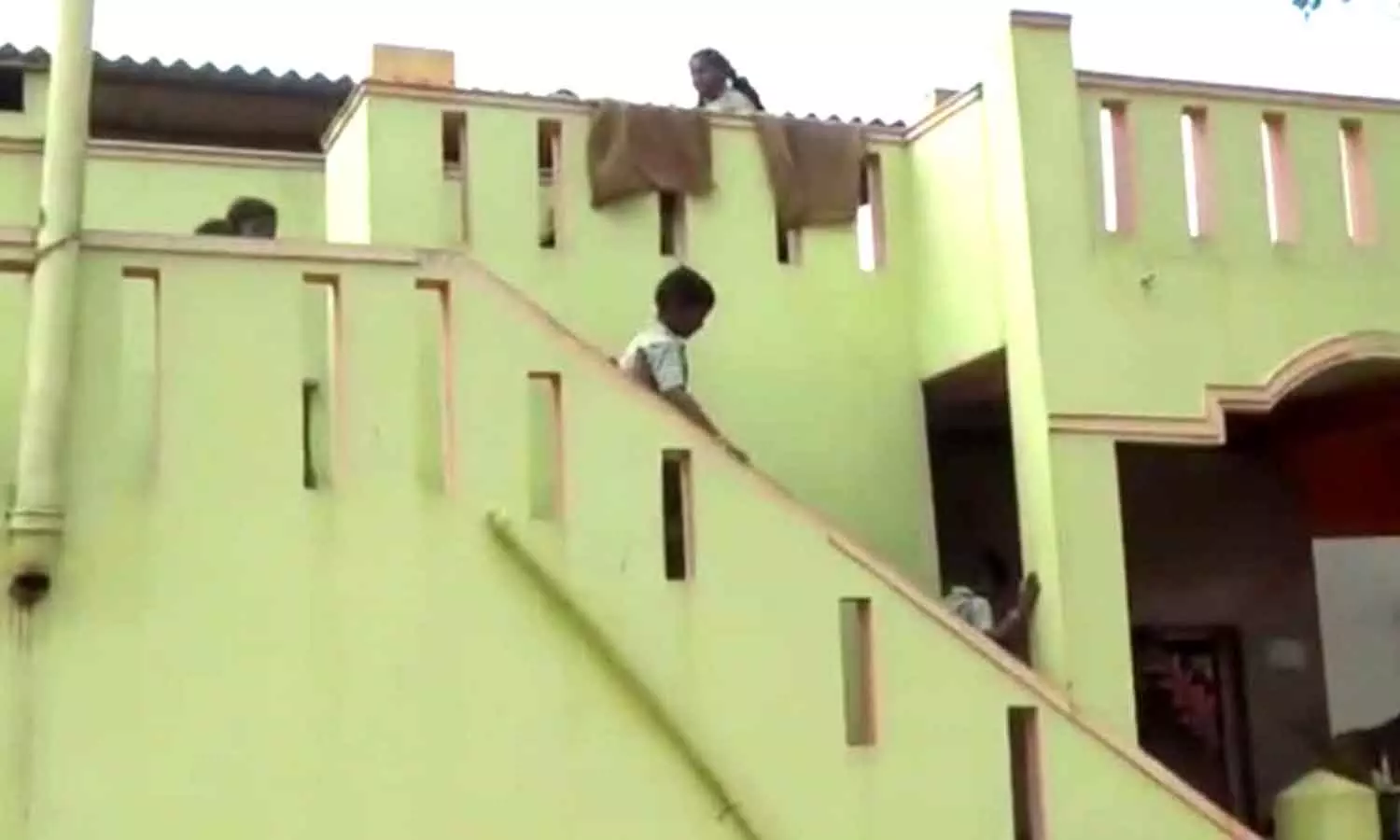 - ஒரு வீட்டின் மொட்டை மாடியில் ஒன்று மற்றும் இரண்டாம் வகுப்பு மாணவர்களுக்கு பாடம் நடத்தப்பட்டு வருகிறது.