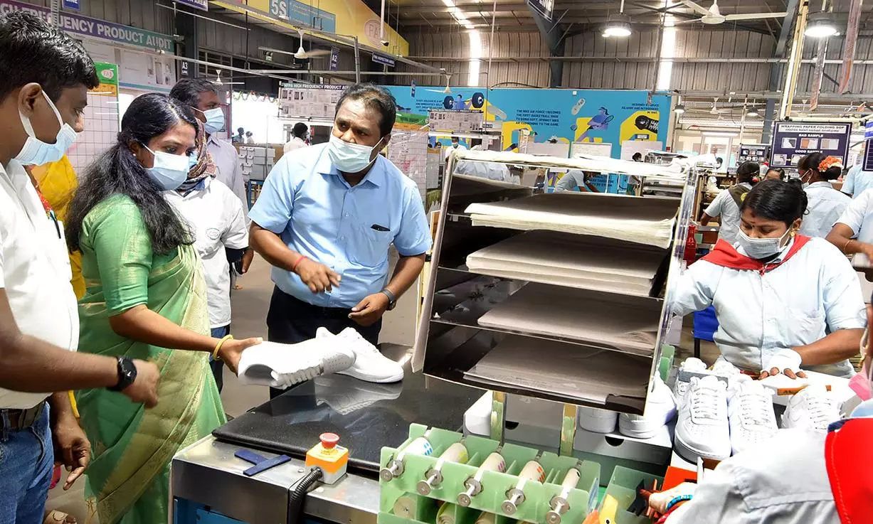அப்போது அந்த நிறுவனத்தில் காலணிகள் தயார் செய்யும் பணிகள், காலணிகள் ஏற்றுமதிக்காக பேக்கேஜ் செய்யும் பணிகள், பாதுகாப்பு ஏற்பாடுகள், பணியாளர்களுக்கு தேவையான அடிப்படை வசதிகள், பெண் பணியாளர்களின் குழந்தைகள் பராமரிப்பு அறை, பணியாளர்களின் அவசர சிகிச்சைக்காக இயங்கி வரும் மருத்துவமனை, சுற்றுசூழல் பாதுகாப்பு, பேருந்து வசதிகளை நேரில் பார்வையிட்டார்.