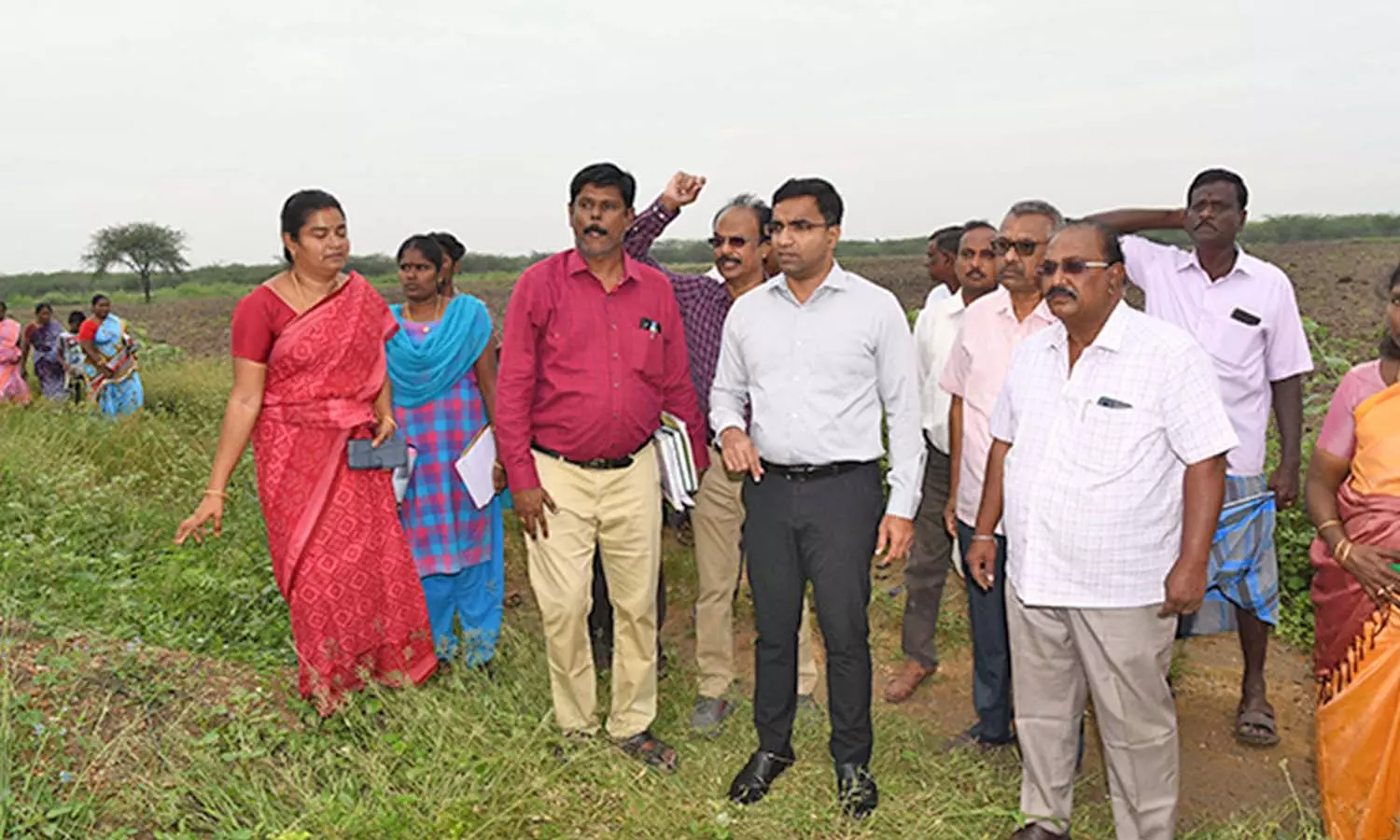 விளாத்திகுளம் அருகே தரிசு நில தொகுப்பினை கலெக்டர் ஆய்வு