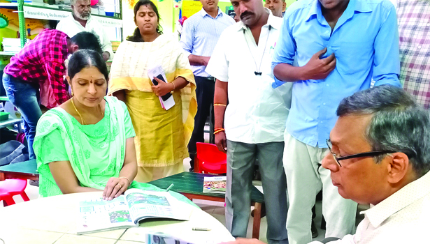 - குழந்தைகளுடன் அமர்ந்து பாடபுத்தகத்தை வாசித்தார்