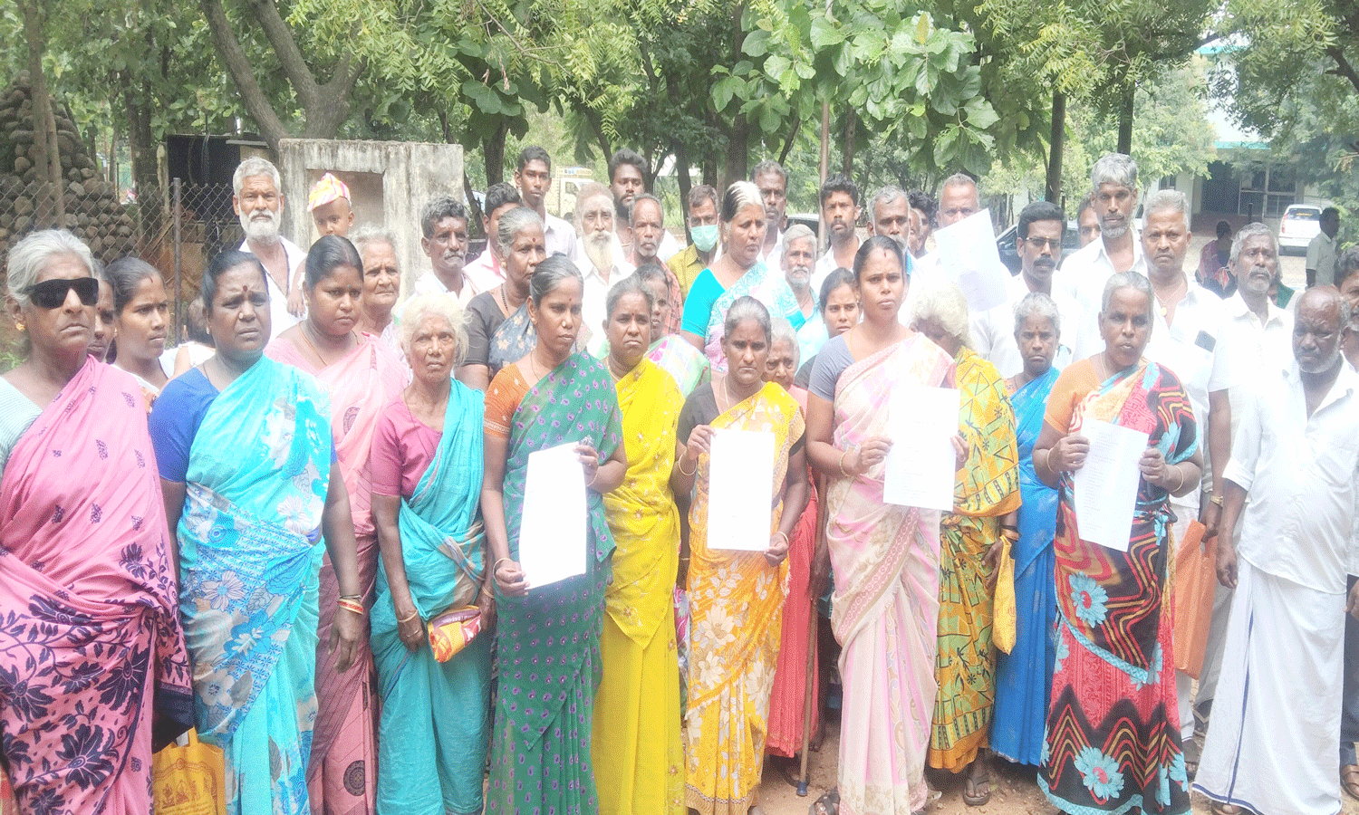 கலெக்டர் அலுவலகத்தில் மனு அளிக்க வந்த கிராம மக்கள்.