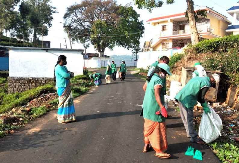 கோத்தகிரி பேரூராட்சி சார்பில் பேரூராட்சிக்கு உட்பட்ட 21 வார்டுகள் மற்றும் பொது இடங்களில் அவ்வப்போது முழு சுகாதாரப் பணிகள் மேற்கொள்ளப்பட்டு வருகிறது. இதன் ஒரு பகுதியாக கோத்தகிரி பேரூராட்சிக்கு சொந்தமான மார்க்கெட் பகுதியில் முழு சுகாதாரப் பணிகள் நடைபெற்றது. குப்பைகள், செடிகள் அகற்றப்பட்டு, கடைகளுக்கு முன் குளோரின் பவுடர் போடப்பட்டது. இதனைத் தொடர்ந்து கழிவு நீர் கால்வாய் அடைப்புகள் அகற்றப்பட்டு, கால்வாய்கள் மற்றும் கடைகளின் முன்புறம் கொசு மருந்து அடிக்கும் பணியும் நடைபெற்றது. இந்தப் பணியில் சுகாதாரப் பணியாளர்கள் மற்றும் தூய்மை பணியாளர்கள் ஈடுபட்டனர்.