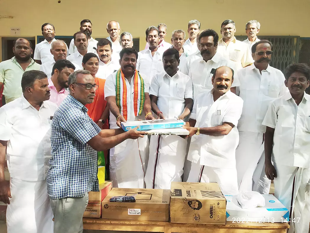 வாடியூர் பள்ளிக்கு கம்ப்யூட்டர் உபகரணங்கள் - சிவபத்மநாதன், பழனி நாடார் எம்.எல்.ஏ. வழங்கினர்