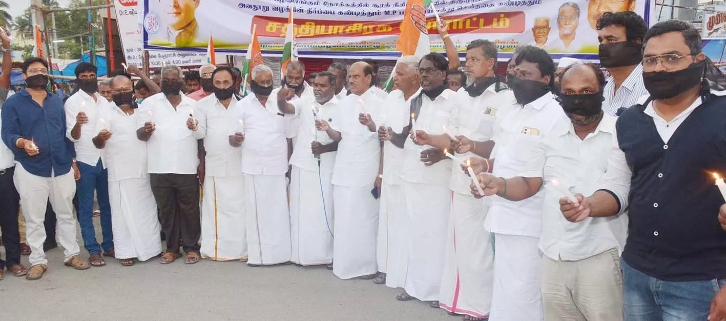 மத்திய அரசைக் கண்டித்து காங்கிரஸ் கட்சியினர் அறப்போராட்டம்