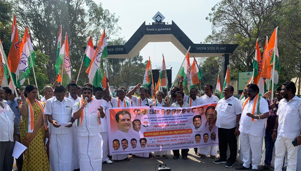 சேலம் இரும்பாலையில் காங்கிரஸ் கட்சியினர் ஆர்ப்பாட்டம்